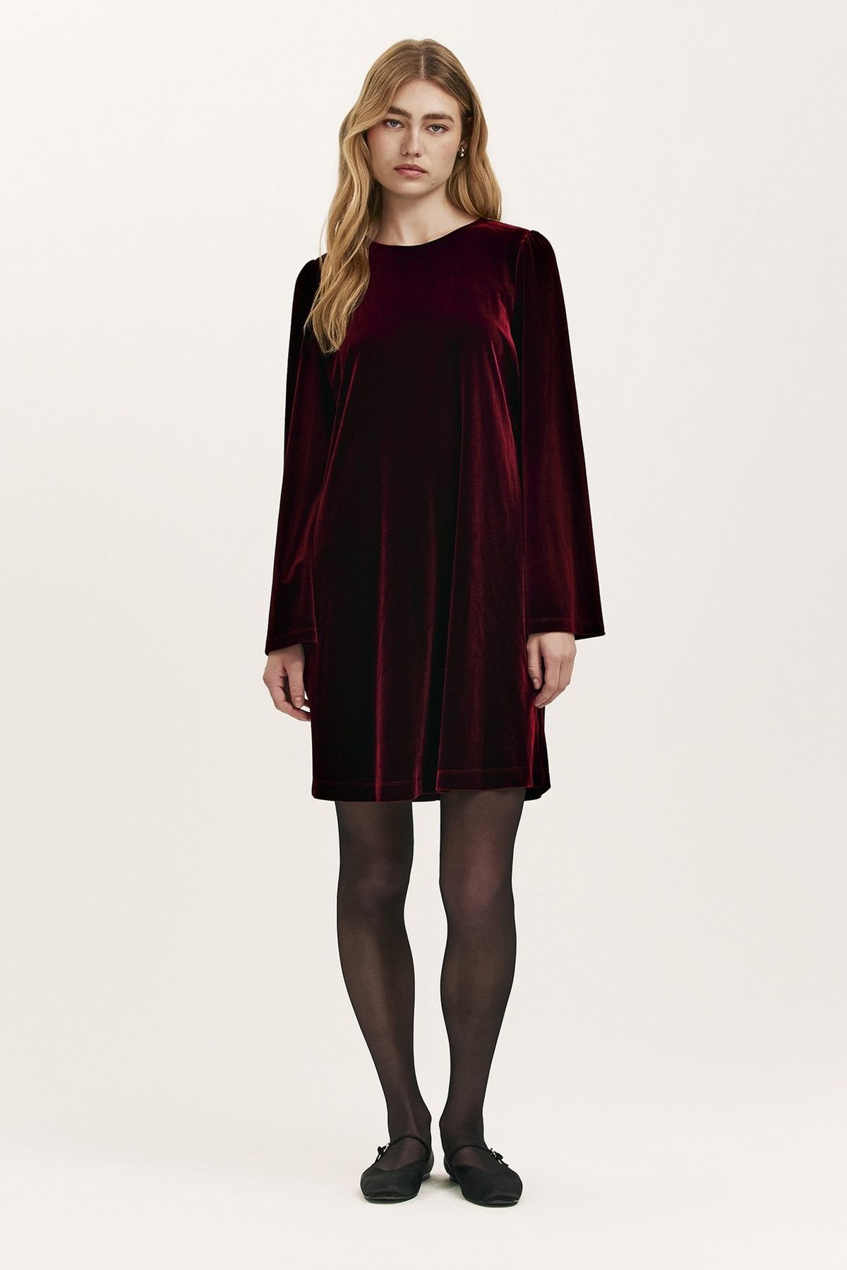 The Finery London Wine Velvet Round Neck Short Dress is ideal for evening, festive, party.