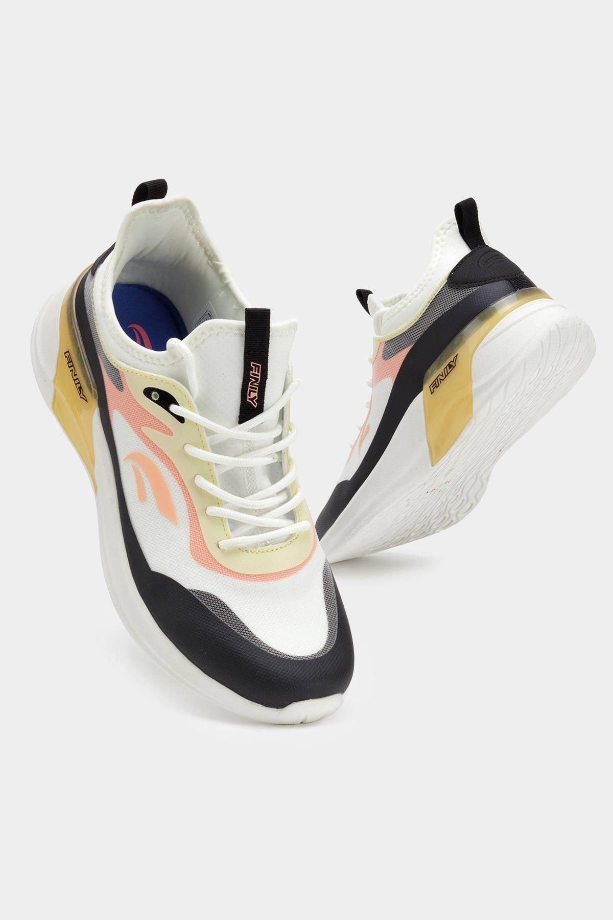 Stylish lace-up runner by Finily in white with vibrant accents. Features a breathable mesh upper and a cushioned sole for comfort. Ideal for casual wear and active lifestyles.