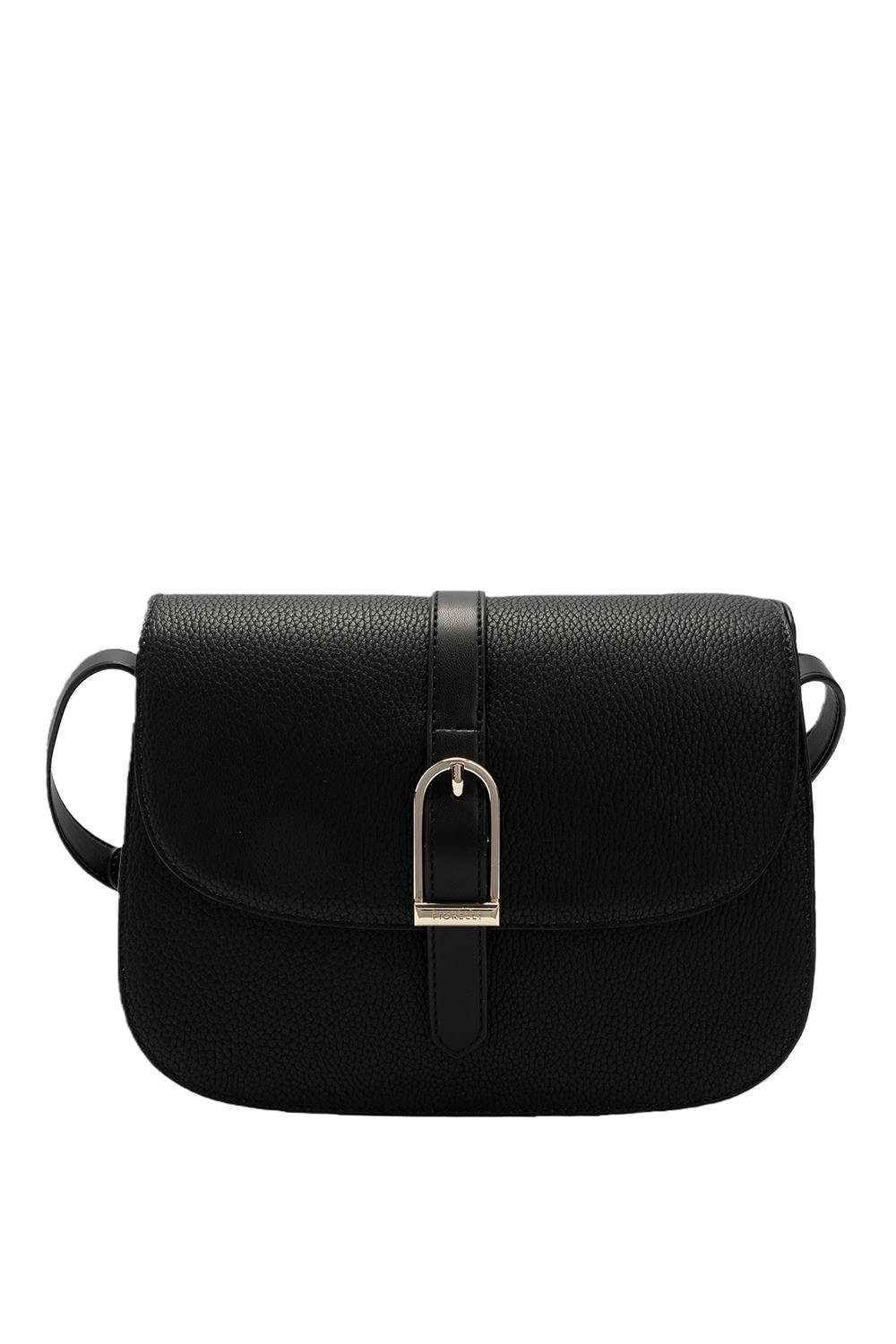 The Fiorelli True Black Leather Flap Crossbody Bag is available in sizes ONE SIZE.