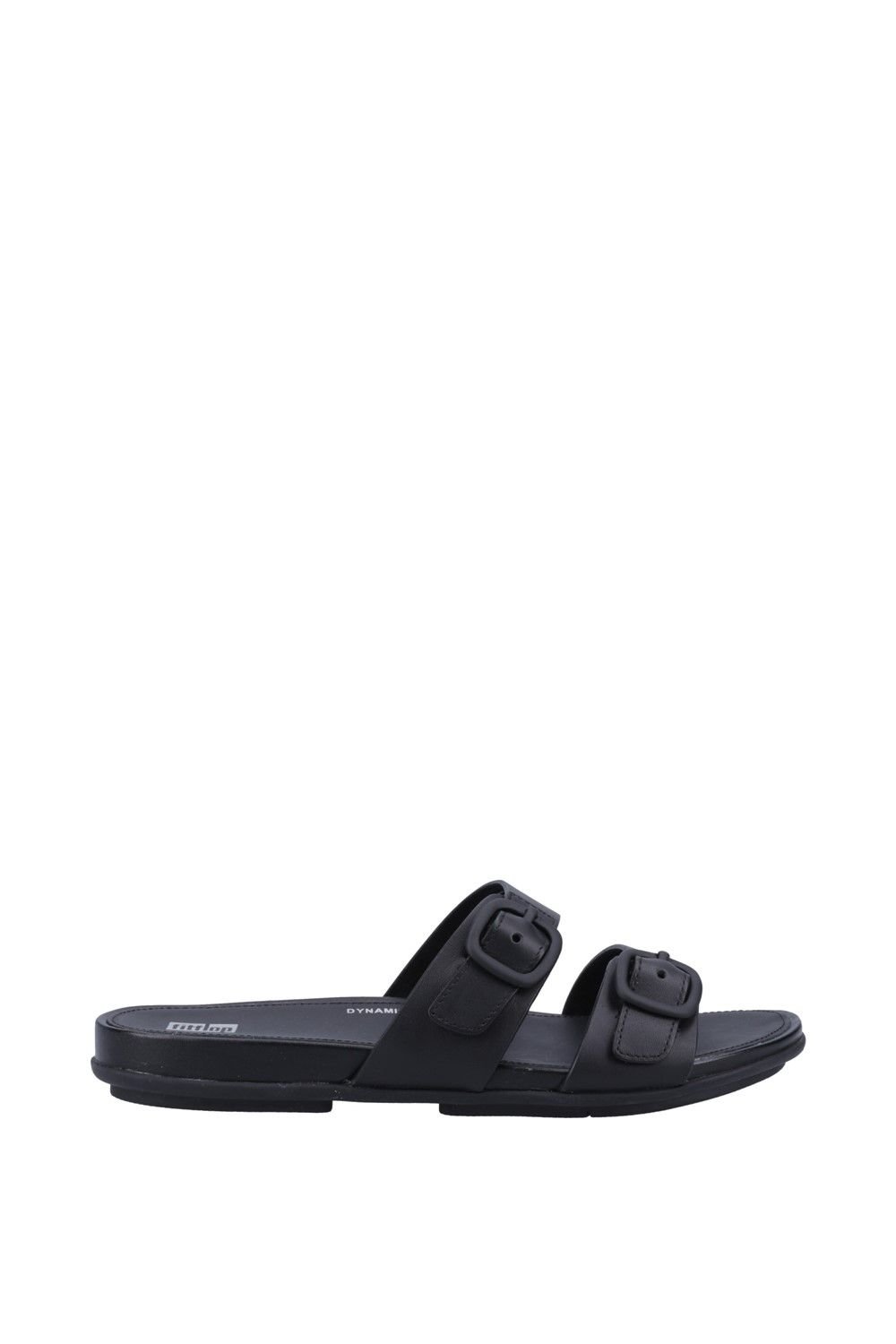 The FitFlop Women's Gracie' Slides in Black is made from leather, rubber.