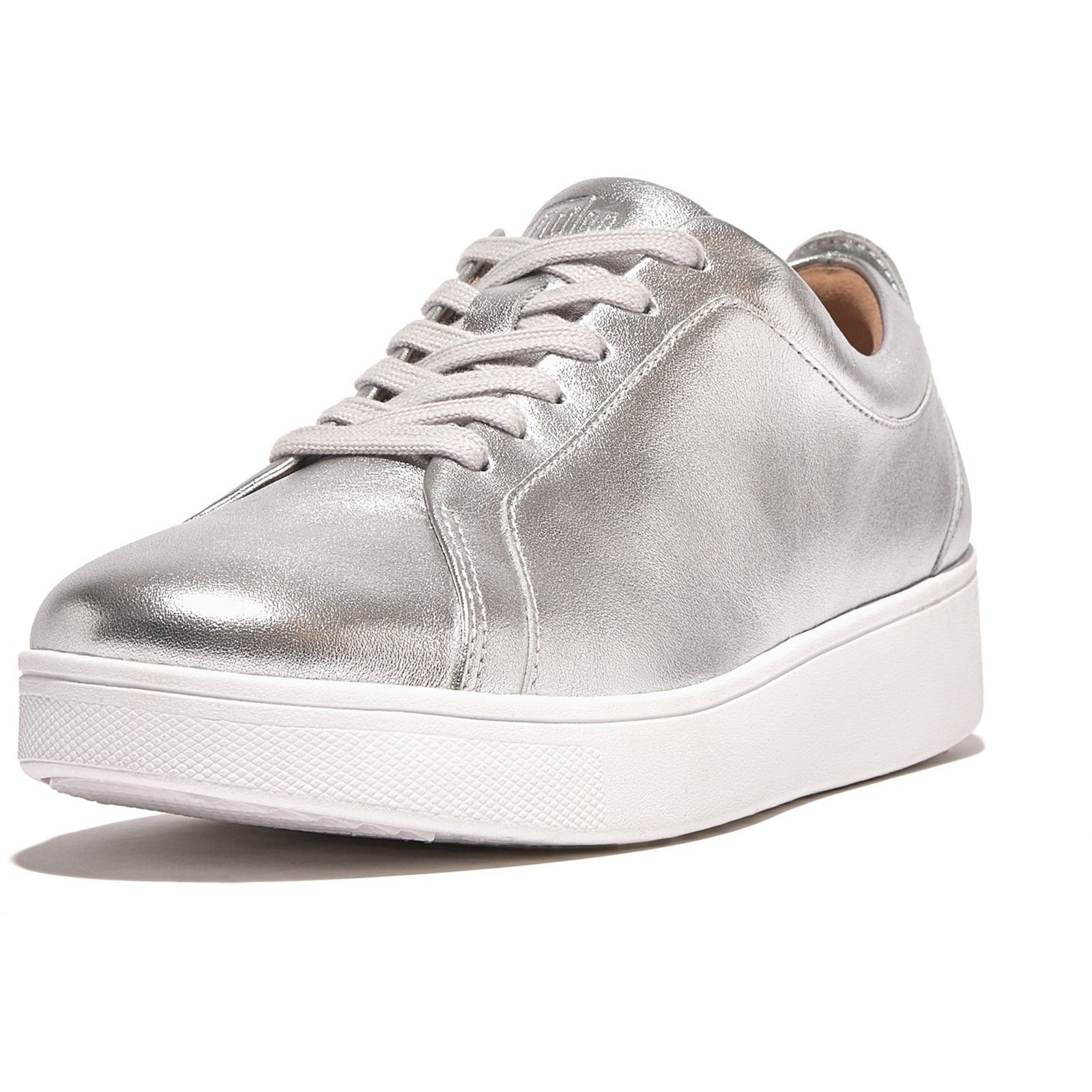 The FitFlop Women's Rally Sneakers in Silver is made from leather, metal, rubber.