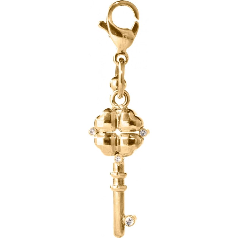 Elegant gold charm from Folli Follie, featuring a key-shaped design adorned with crystal accents. A luxurious accessory perfect for adding a touch of sophistication to any outfit.