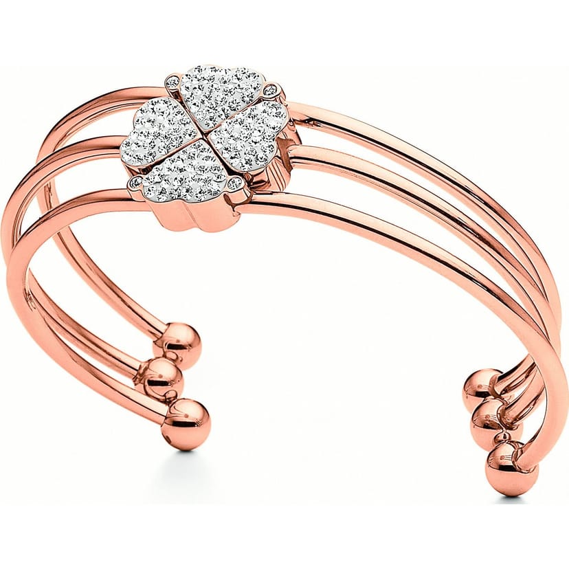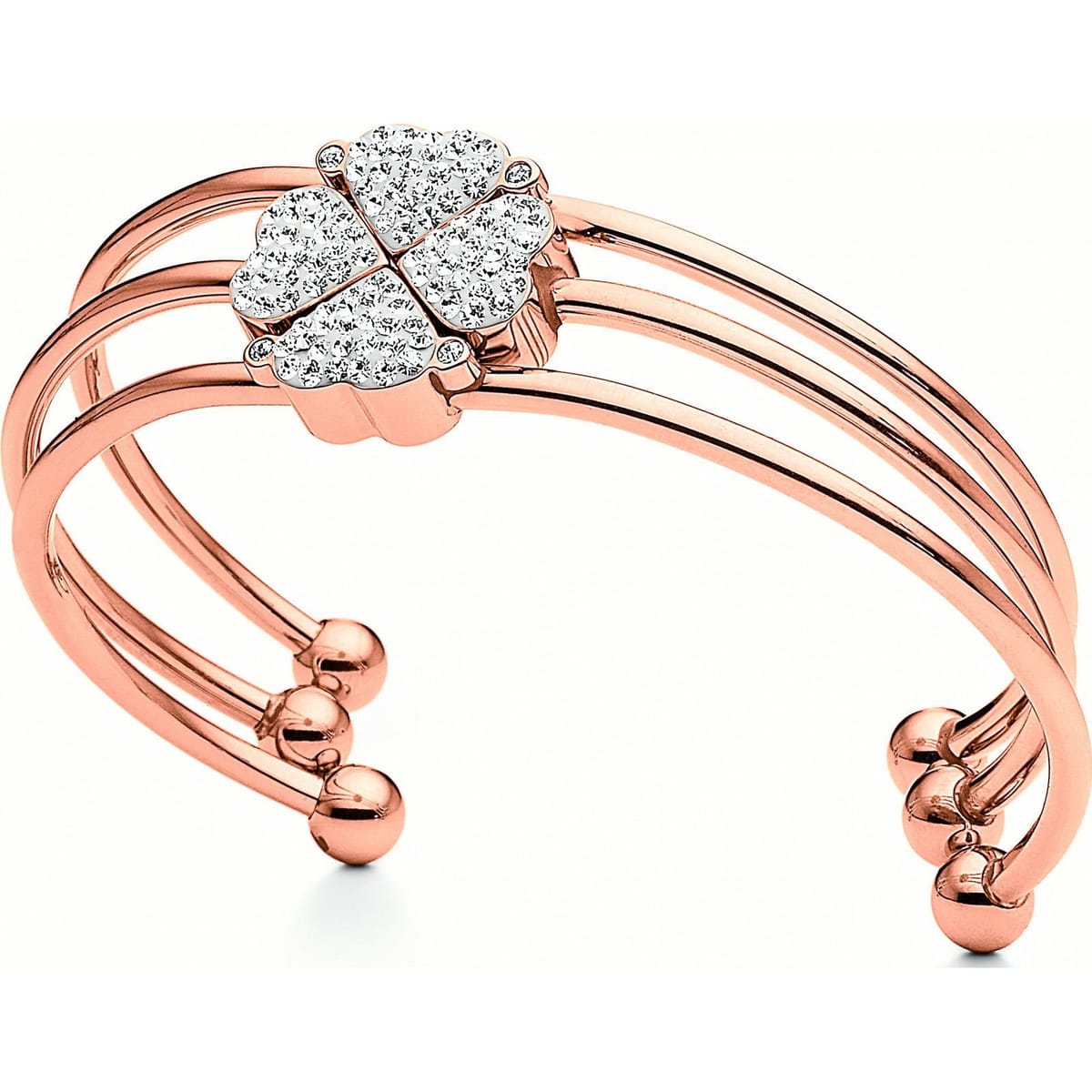 This Folli Follie bracelet features a rose gold finish with a clover-shaped design adorned with sparkling diamonds. A perfect blend of elegance and charm, it's designed for everyday wear or special occasions.