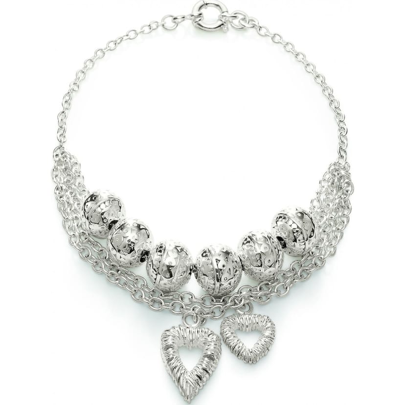 Timeless silver necklace from Folli Follie, featuring a chain with textured beads and heart pendants. A high-standard piece that will gleam for years to come.