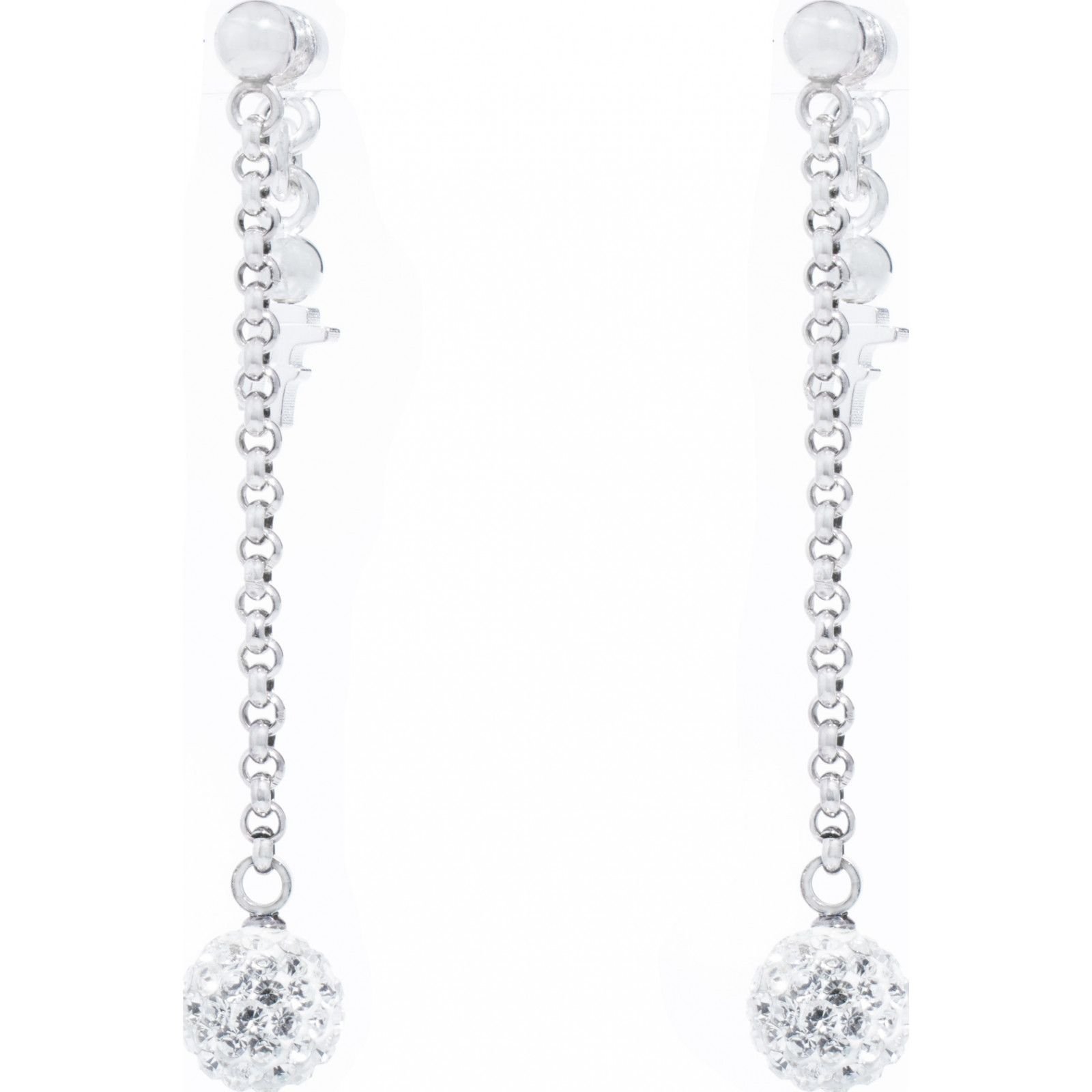 Elegant silver crystal drop earrings from Folli Follie. Featuring a chain-link design and crystal-embellished balls, these earrings add a touch of sparkle to any outfit.