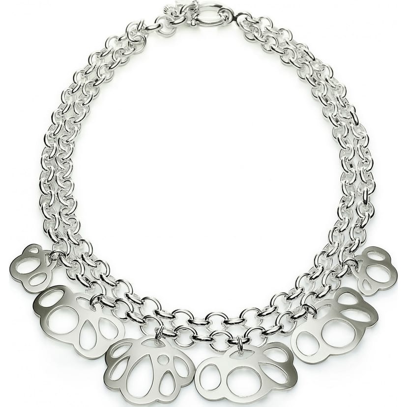 Stylish silver necklace from Folli Follie, featuring a modern chain design with unique paw print pendants. Perfect for adding a touch of contemporary flair to any outfit.