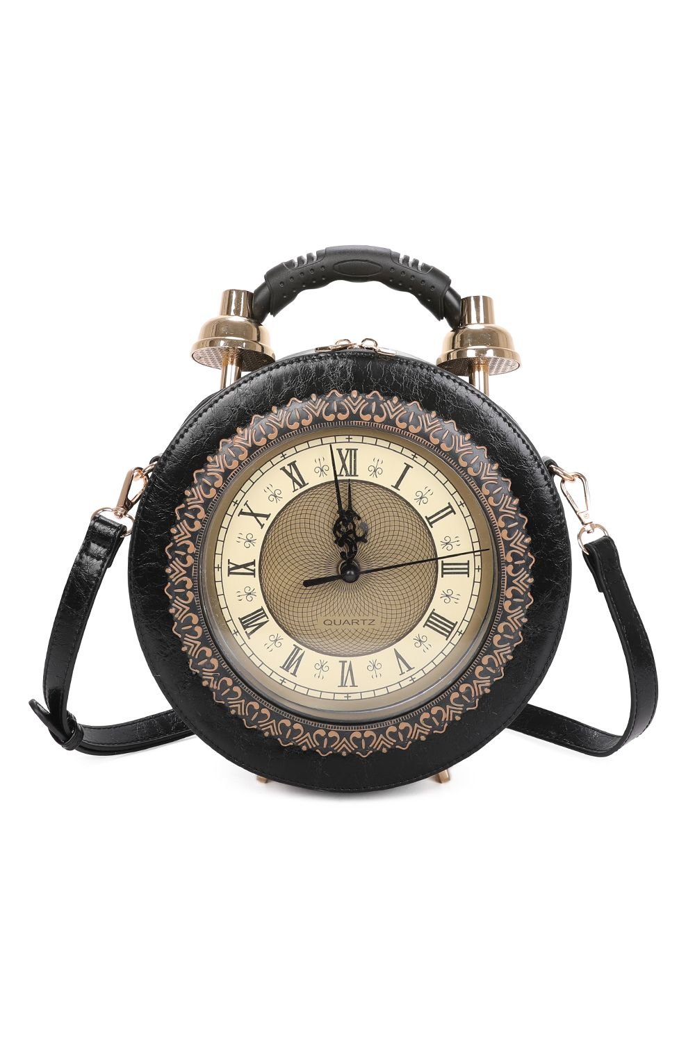 The Fontanella Fashion Black PU Clock Crossbody Handbag is ideal for casual, everyday, date-night.