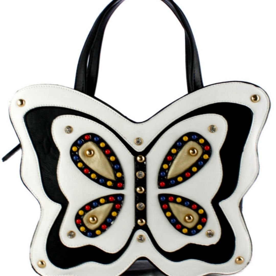 This uniquely shaped handbag captures the elegance of a butterfly in full flight, blending whimsy with bold design. Embellished with eye-catching studs and intricate detailing, it adds a striking statement to any outfit. Perfect for those who love to stand out, it combines artistic flair with everyday functionality.