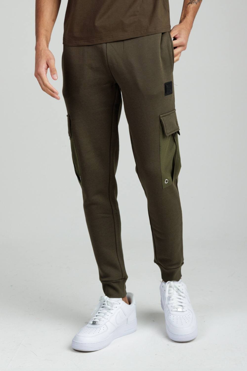 The Foray Men's Khaki Multi Pocket Utility Cargo Joggers is made from cotton, polyester, fleece.