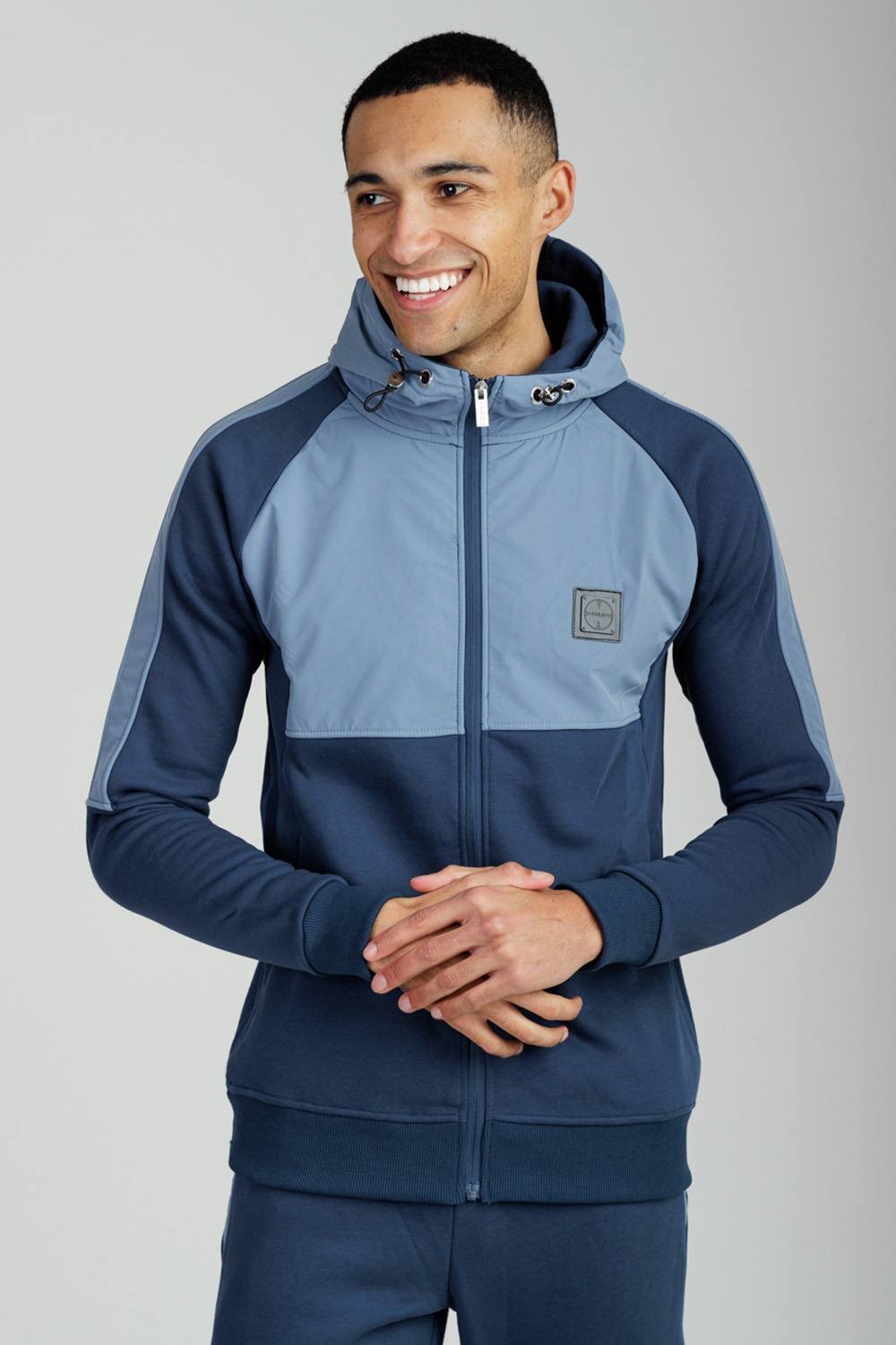 Elevate your layering game with the Foray zip-through hoody in navy. Crafted from a durable cotton-rich blend with a soft fleece body, this technical style features weather-resistant panelling across the chest and shoulders. Perfect for modern, active lifestyles.