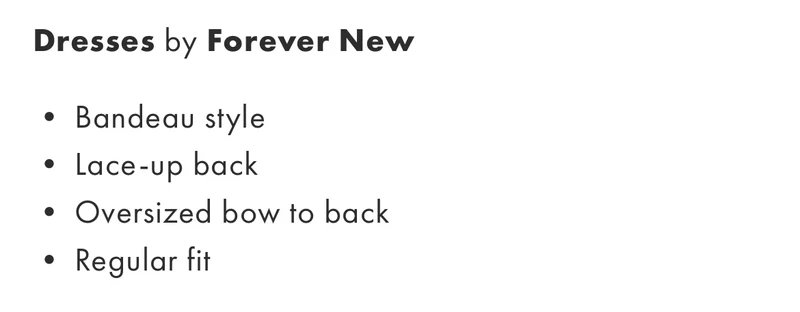 The Forever New Bandeau Bow Mini Dress in Cream is made from cotton, polyester.
