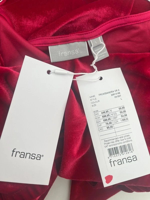 The Fransa Red Velvet Wrap Dress is available in sizes L.