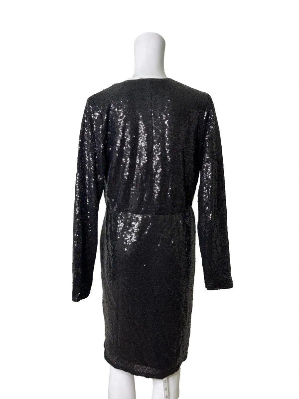 The Fransa Black Sequin Stretch Wrap Dress is available in sizes XL.