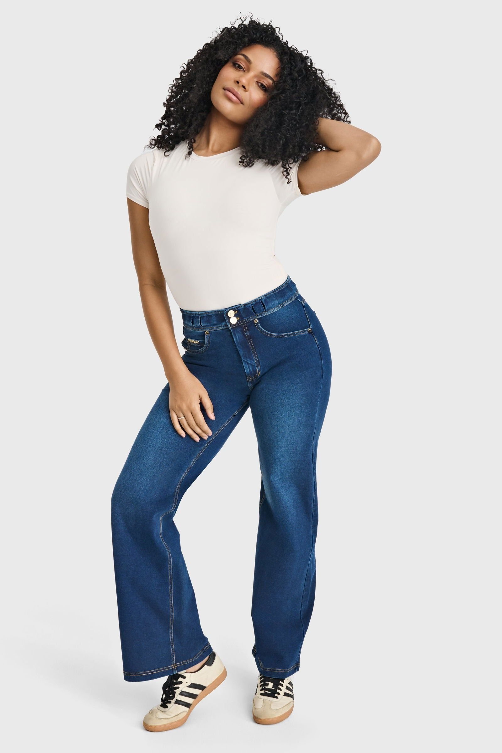 The Freddy Women's Dark Blue Denim High Waisted Wide Leg Jeans is ideal for casual, everyday, outings.