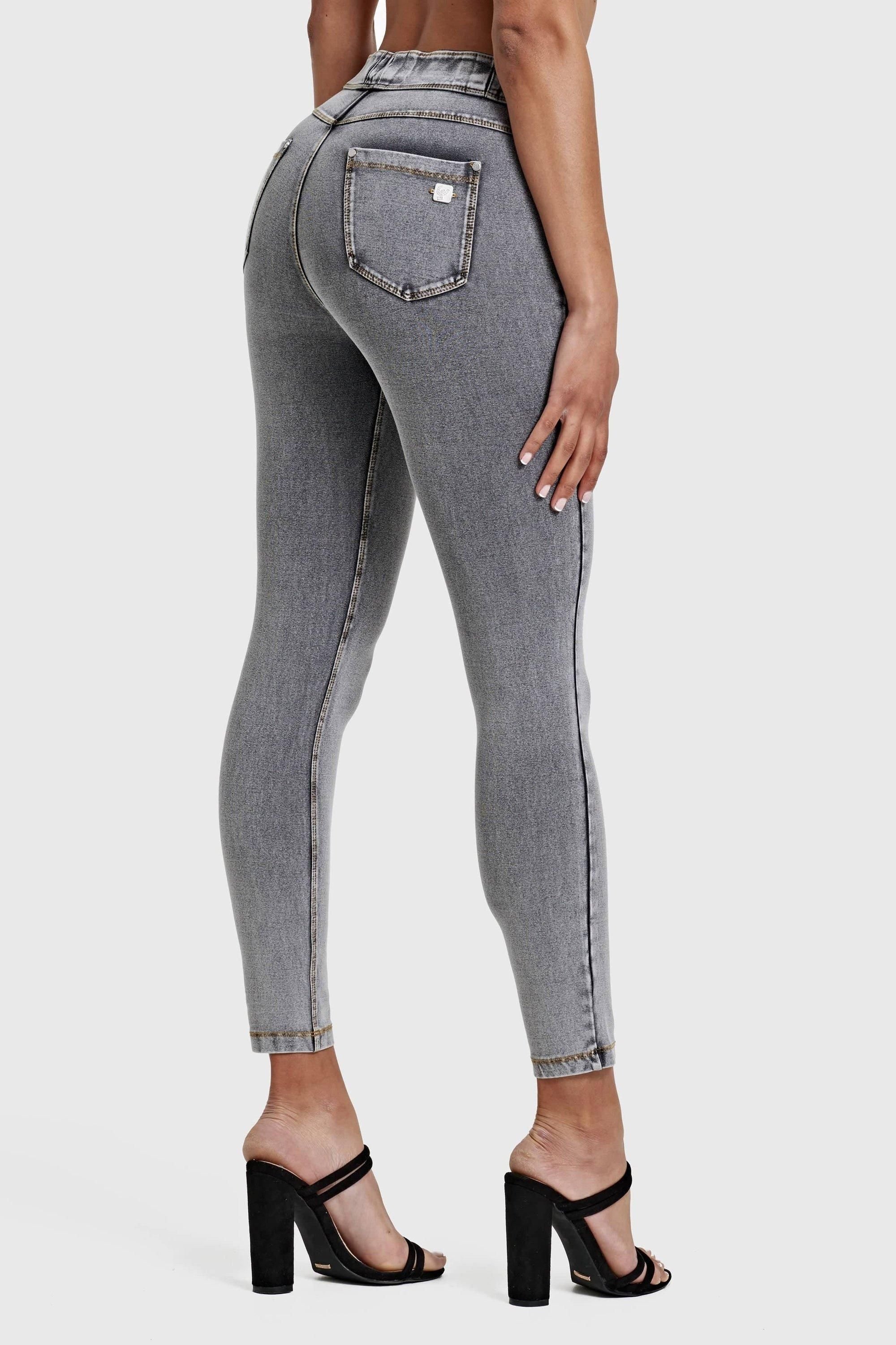 Stylish Freddy high-waisted jeans in grey denim with a form-fitting, comfortable fit. Features a secure, contouring waistband and classic denim details. Perfect for a casual look.