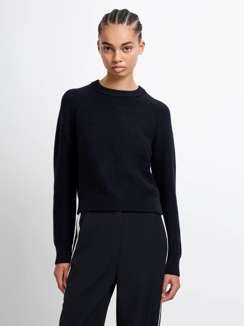 Stylish black knit crew neck jumper by French Connection. Made from a soft knit fabric, this jumper features long sleeves and a classic crew neckline. Subtle side hem notches add a touch of detail to this everyday knitwear staple.