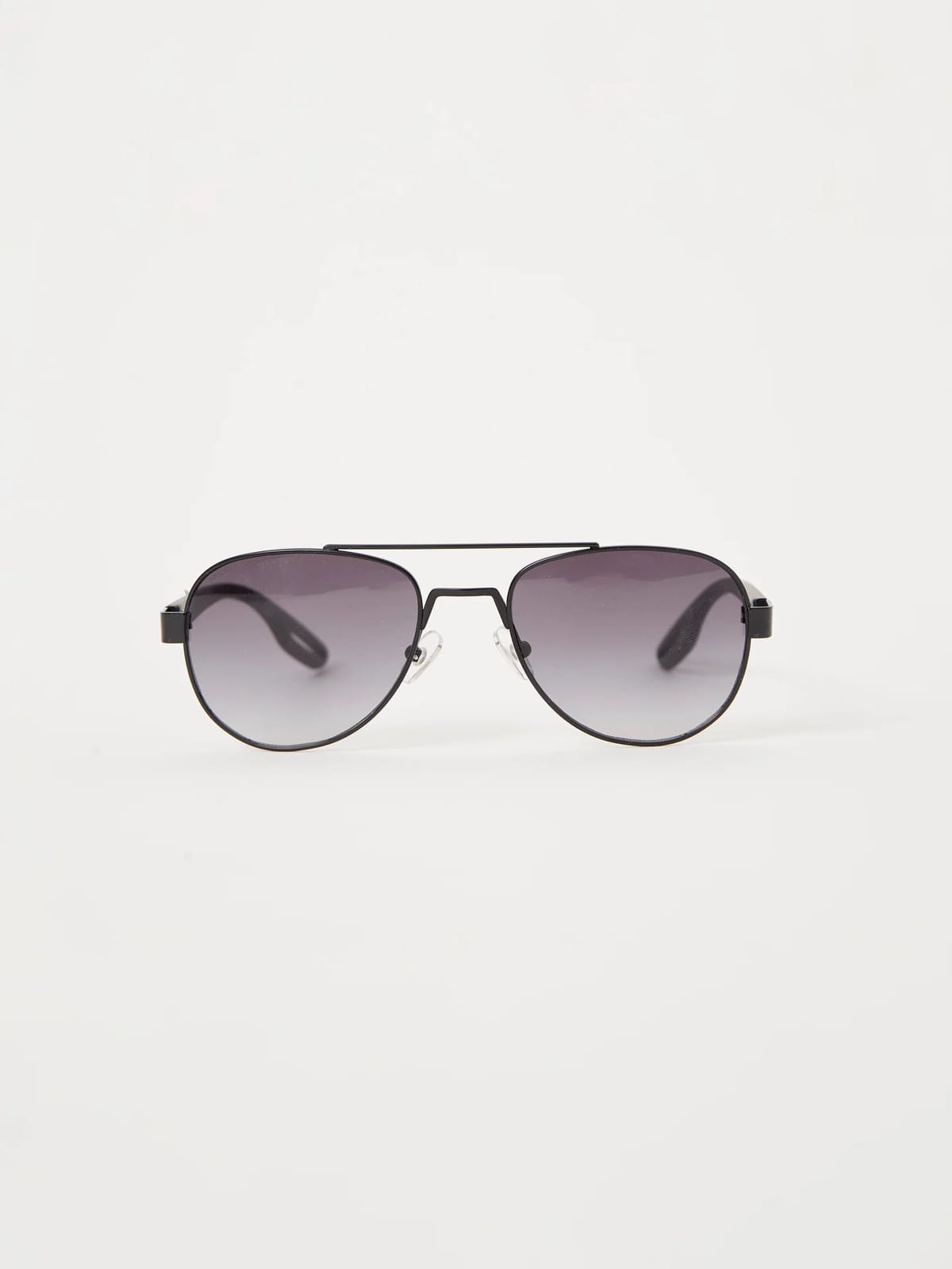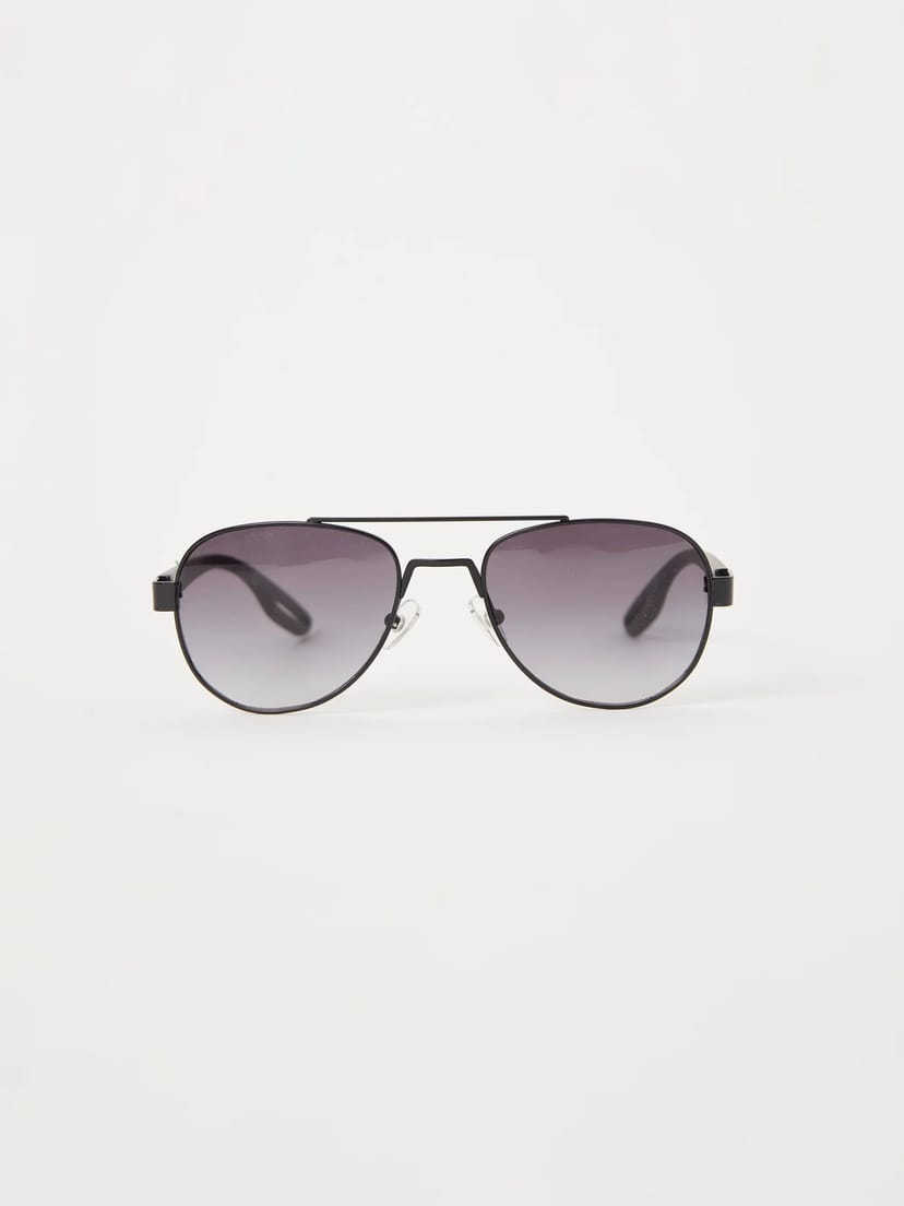 Contemporary black metal D-frame sunglasses with gradient grey lenses. Ideal for urban adventures and stylish city strolls.
