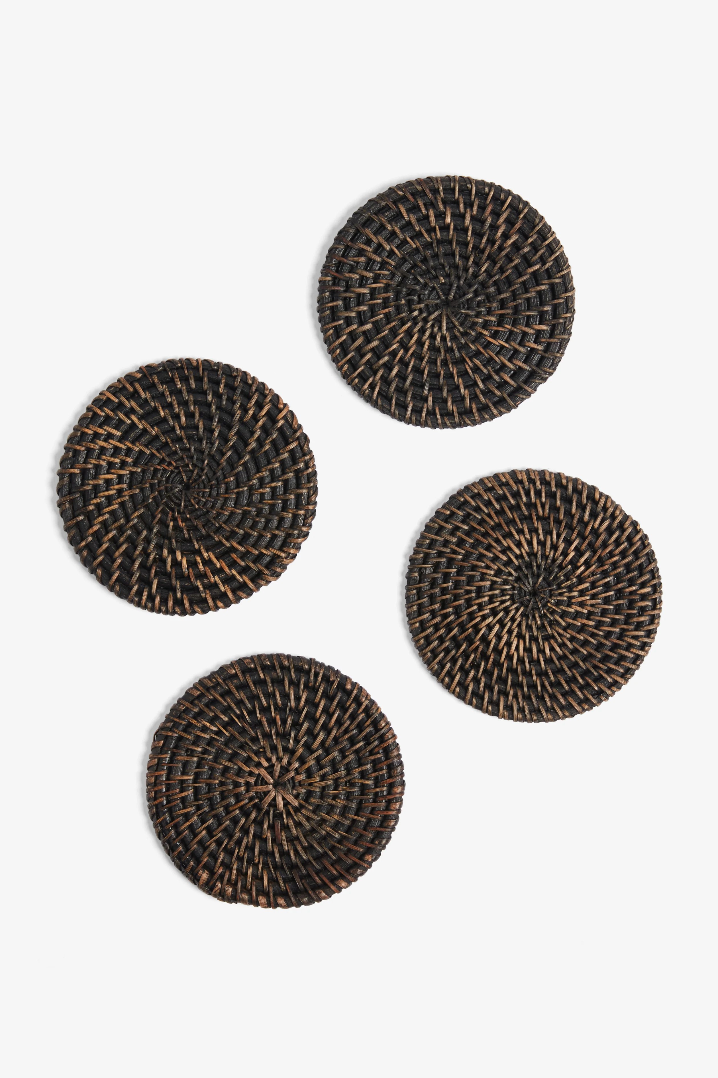 The French Connection Black Rattan Coasters (Set of 4) is made from rattan.