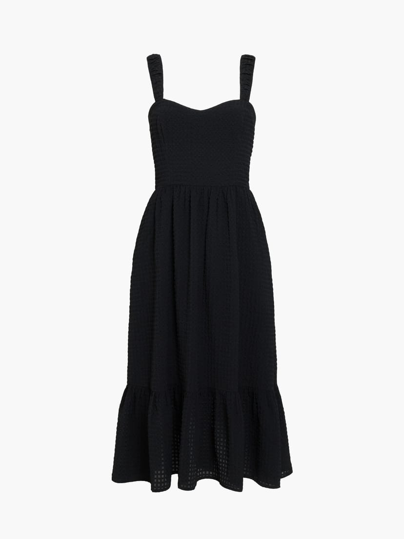 The French Connection Black Seersucker Sweetheart Dress is made from seersucker.