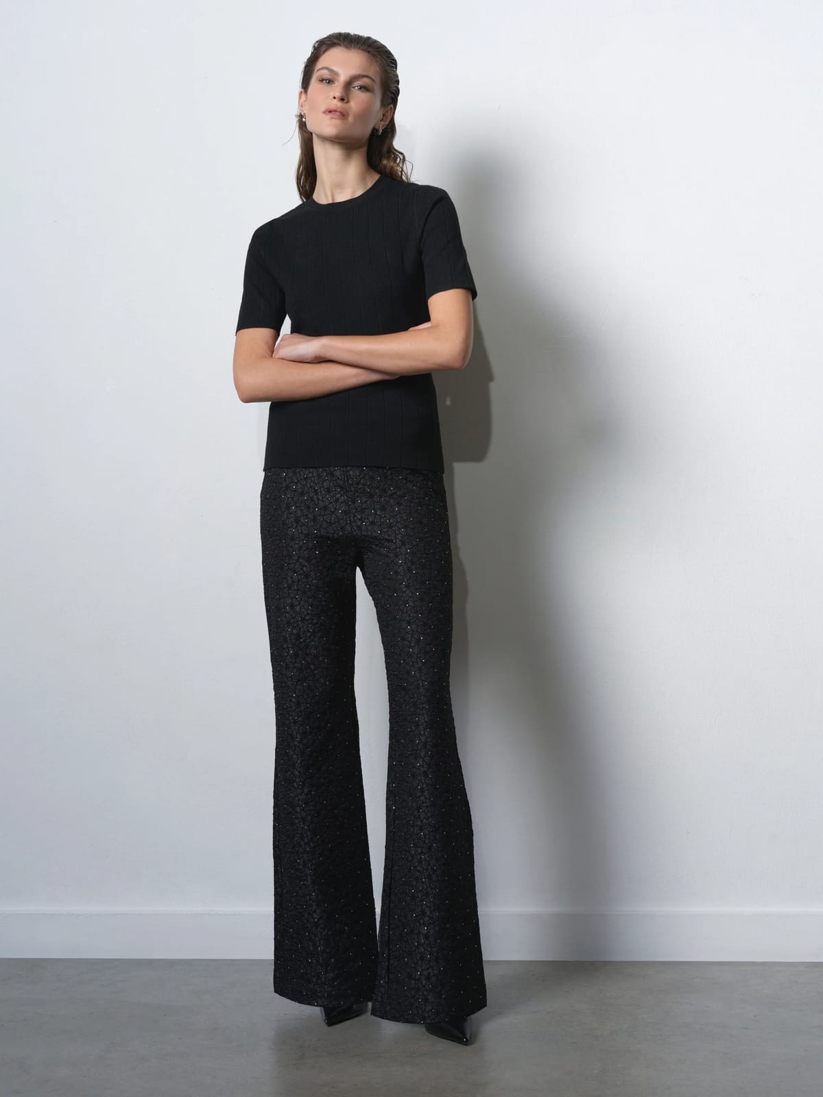 The French Connection Black Jacquard Diamante Flared Trousers is ideal for evening, party, date-night.