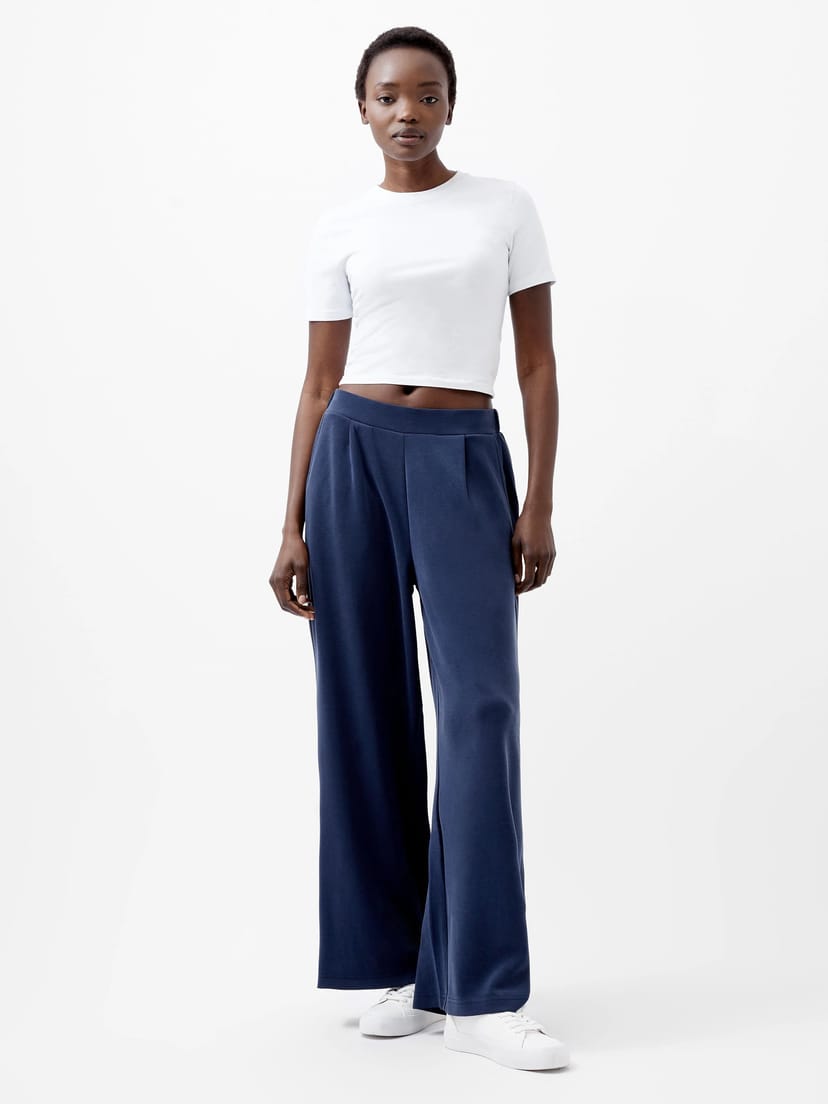 View French Connection UK's returns policyStylish wide leg trousers in midnight blue from French Connection. Made from a soft fabric, these trousers feature an elasticated back waistband and practical pockets. Ideal for pairing with Wren Short Sleeve Pinched T-Shirt or Wren Half Zip Sweater for a coordinated look.