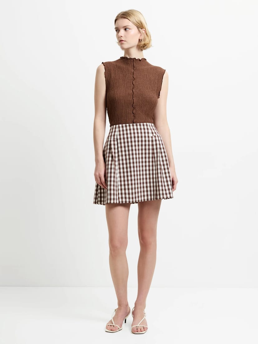 View French Connection UK's returns policyThis tailored mini skirt from French Connection features a high waistline, flattering side pleats, and a contrasting gingham print. Made from a soft fabric, it is perfect for a casual day-to-night look.