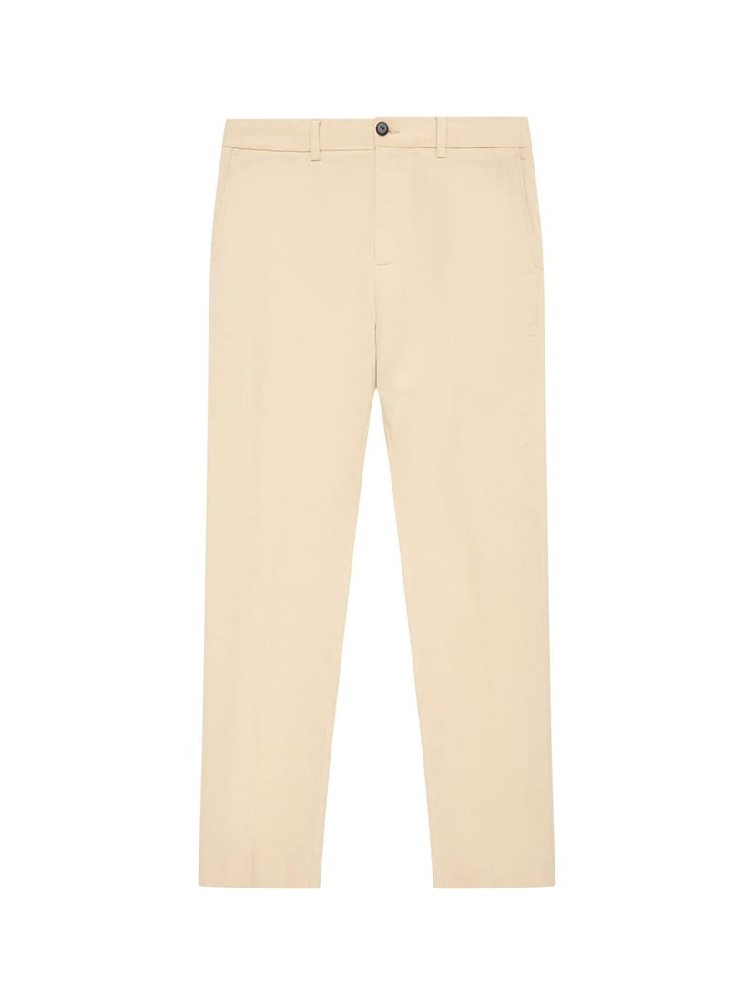 Smart and breezy, these beige linen trousers from French Connection feature a slim fit, crisp pleats, and lightweight construction for polished comfort. Ideal for transitioning from day to evening.
