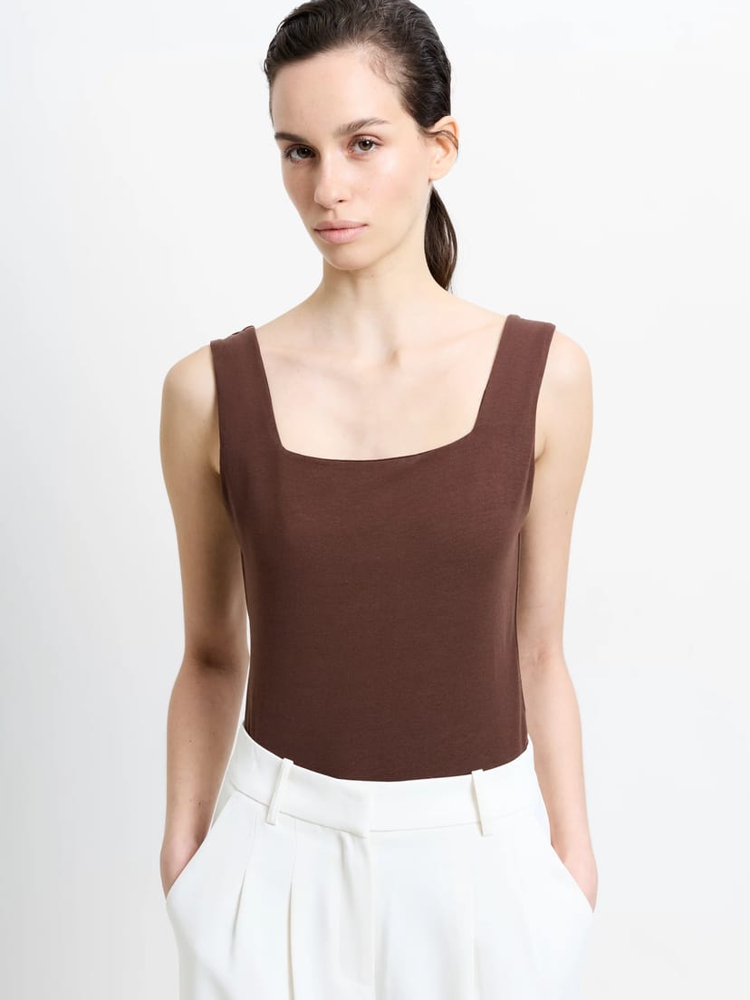 View French Connection UK's returns policyThis Chocolate Brown Square Neck Bodysuit by French Connection is a versatile piece. Made from soft, smooth fabric, it features a square neckline and popper fasteners. Ideal for layering or wearing solo, it's perfect for everyday wear.
