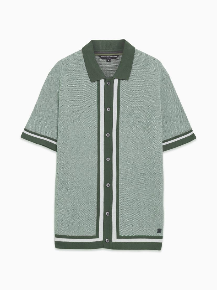 View French Connection UK's returns policyThis green and white polo shirt features a button-through front, neat collar, and short sleeves with ribbed contrasting edges. Made from soft, stretchy cotton, it's perfect for casual wear.