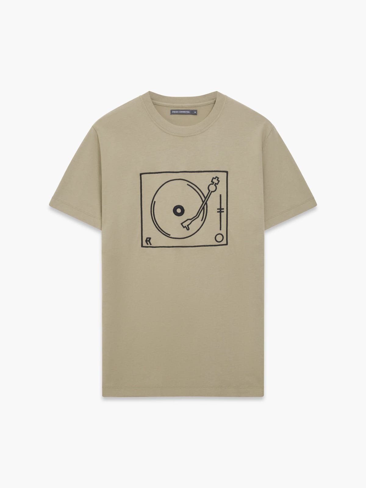 View French Connection UK's returns policyThis light khaki graphic t-shirt from French Connection features a black turntable print. Made from soft cotton, it offers a regular fit and short sleeves. Ideal for casual wear.