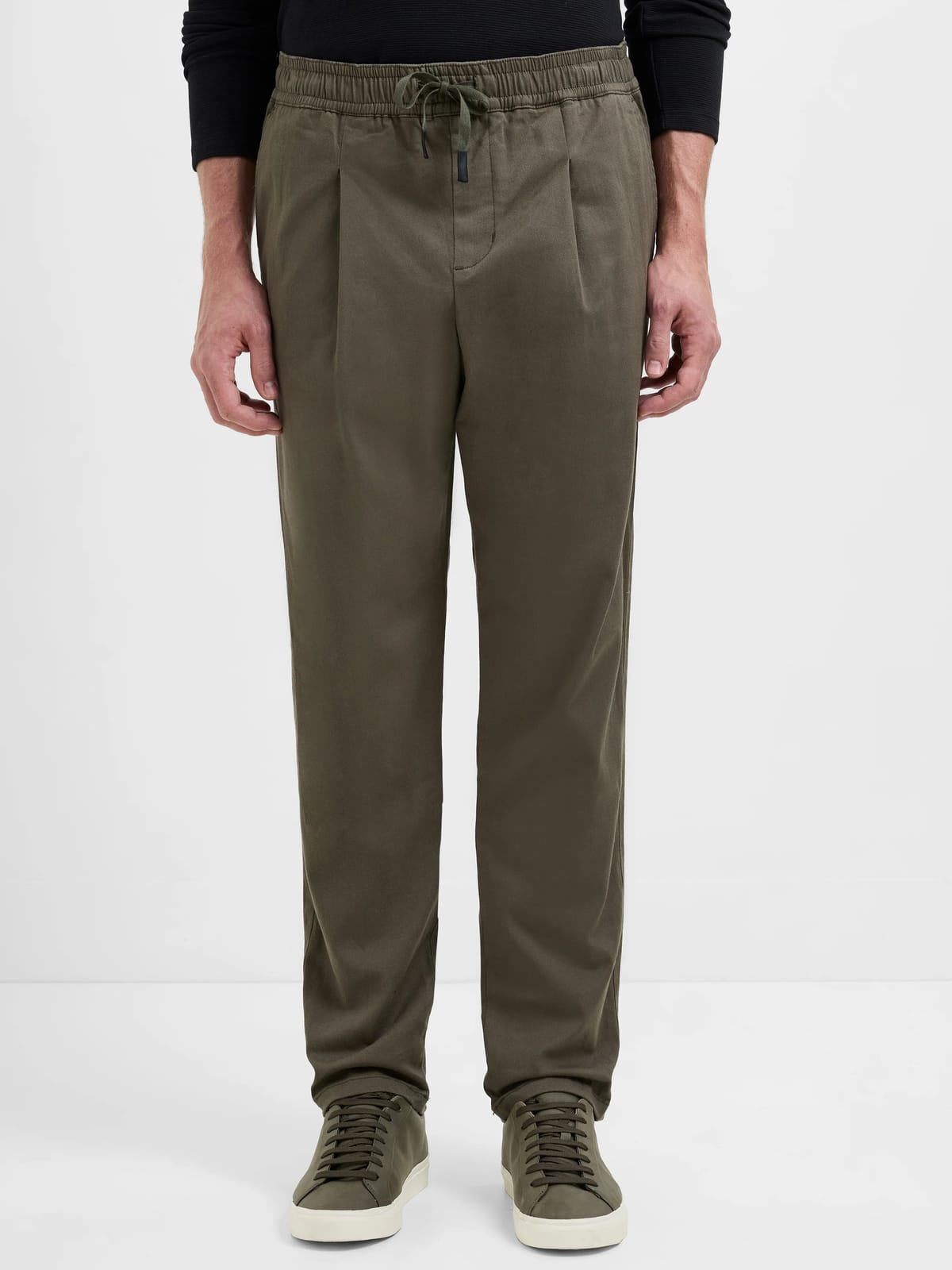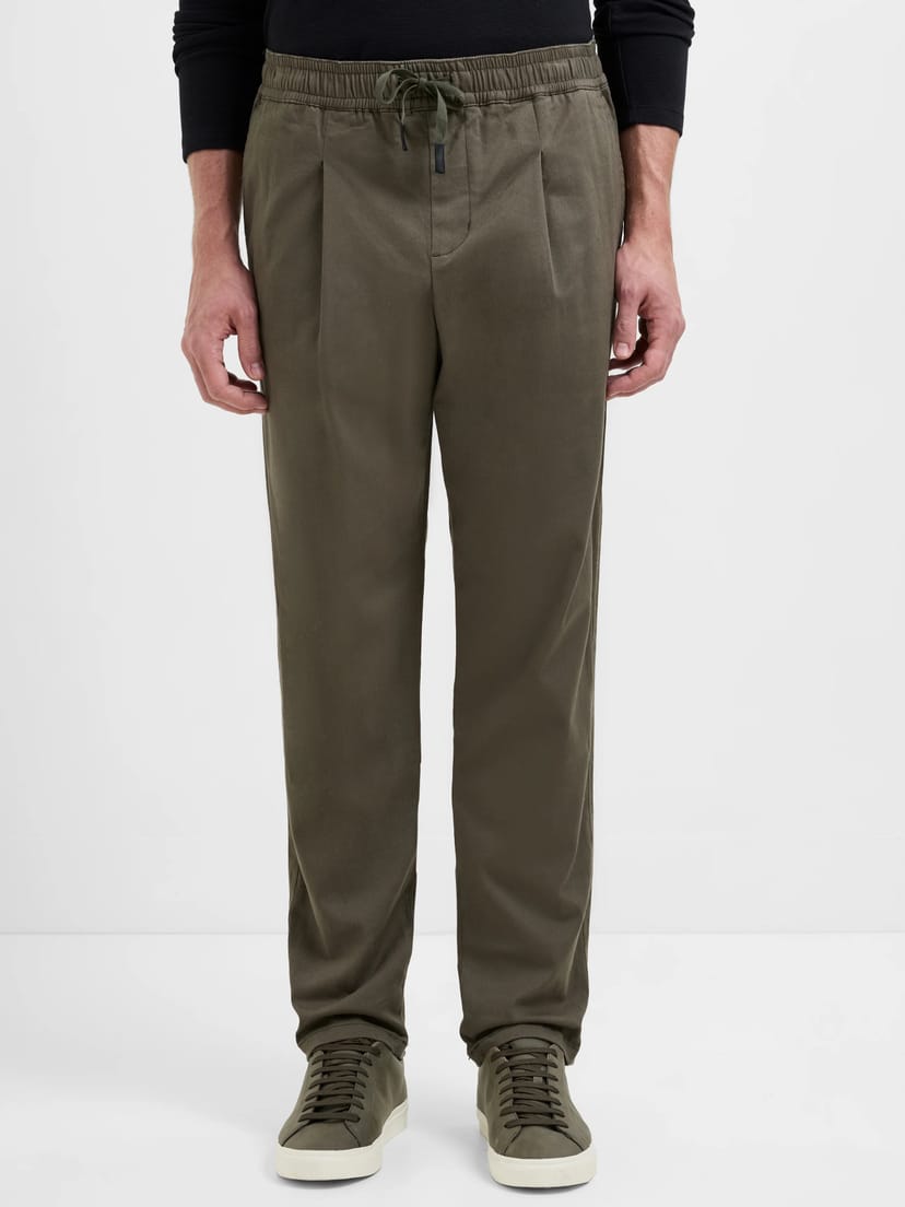 View French Connection UK's returns policyRelaxed style meets premium comfort with these Moss Green Soft Twill Trousers. Crafted with a subtle broken twill weave, these trousers feature a drawstring waist, 4 pockets, and a sleek straight leg fit. Perfect for casual and smart-casual occasions.