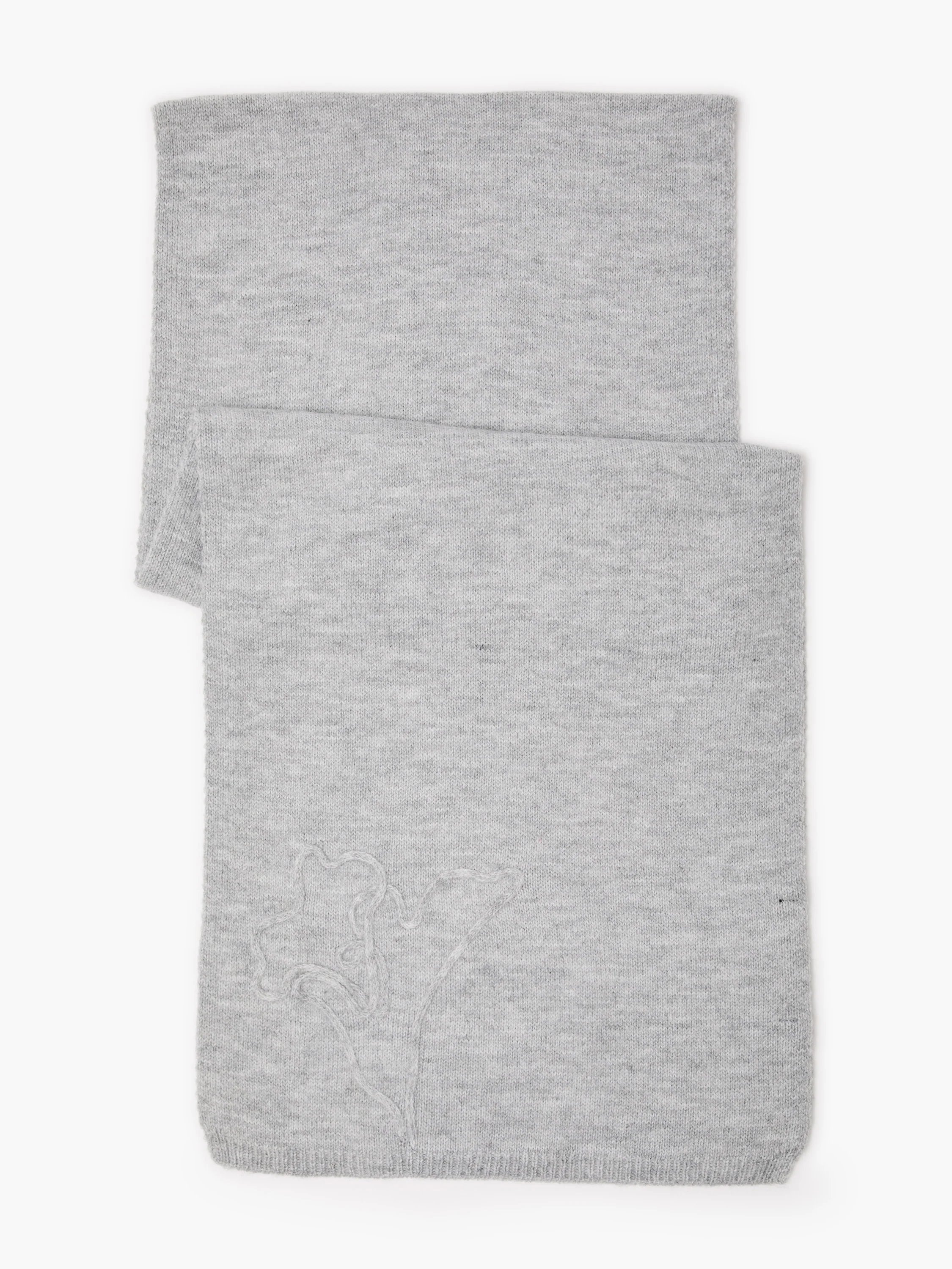 Stylish grey floral knit scarf from French Connection. Made from a soft-touch knit, this scarf features a tonal embroidered floral motif on each edge for a subtle detail. Ideal for adding a touch of elegance to your cold-weather accessories.