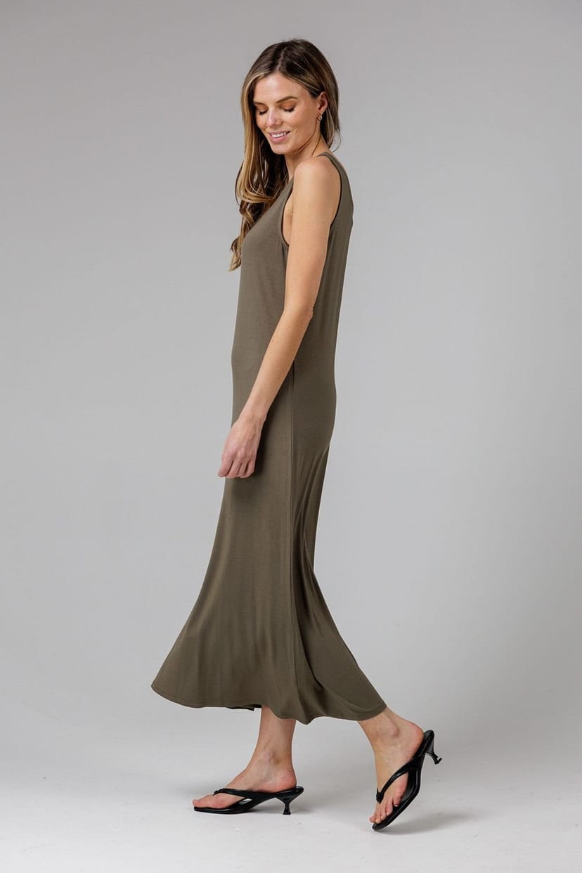 The French Connection Khaki Sleeveless Scoop Neck Maxi Dress is ideal for casual, formal, evening.