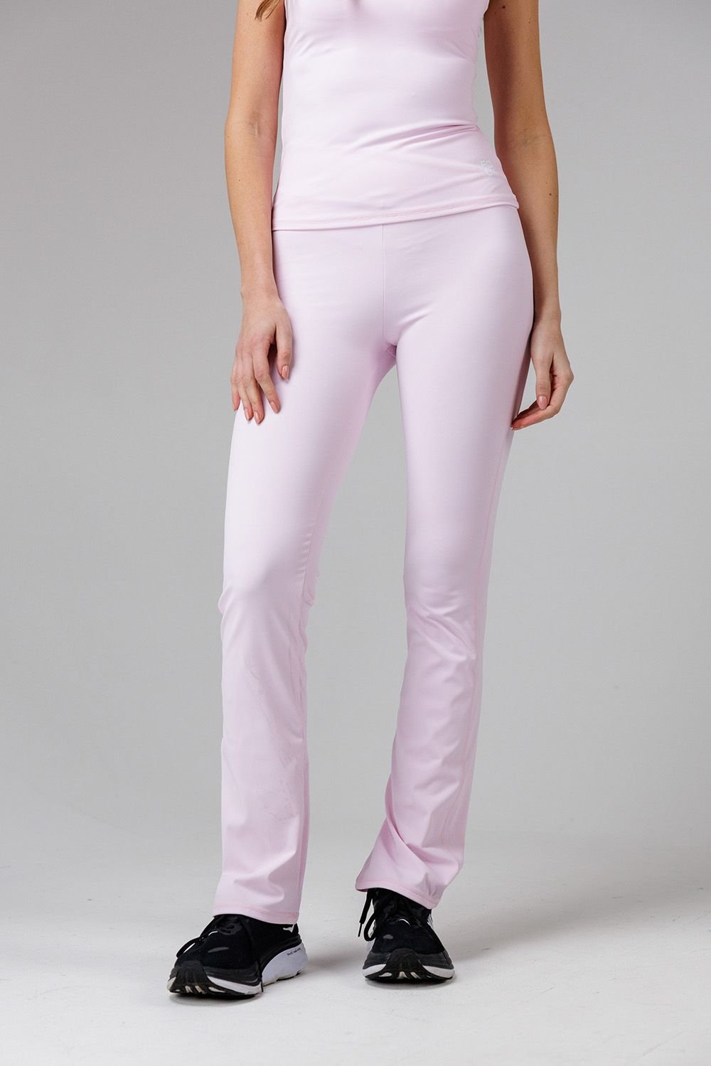 Stylish pink stretch yoga pants by French Connection. Designed for comfort and flexibility, these pants feature a wrap waist and flared legs. Ideal for yoga, gym, or lounging.