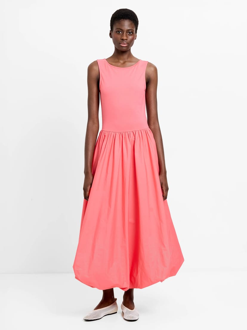 View French Connection UK's returns policyThis raspberry pink jersey midi dress features a sleeveless silhouette with a boat neckline and full bubble hem skirt. Made from a soft, smooth jersey and woven mix fabric, it's perfect for casual or evening wear.