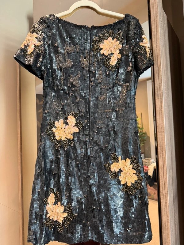The French Connection Black Sequin Mini Dress is available in sizes M.
