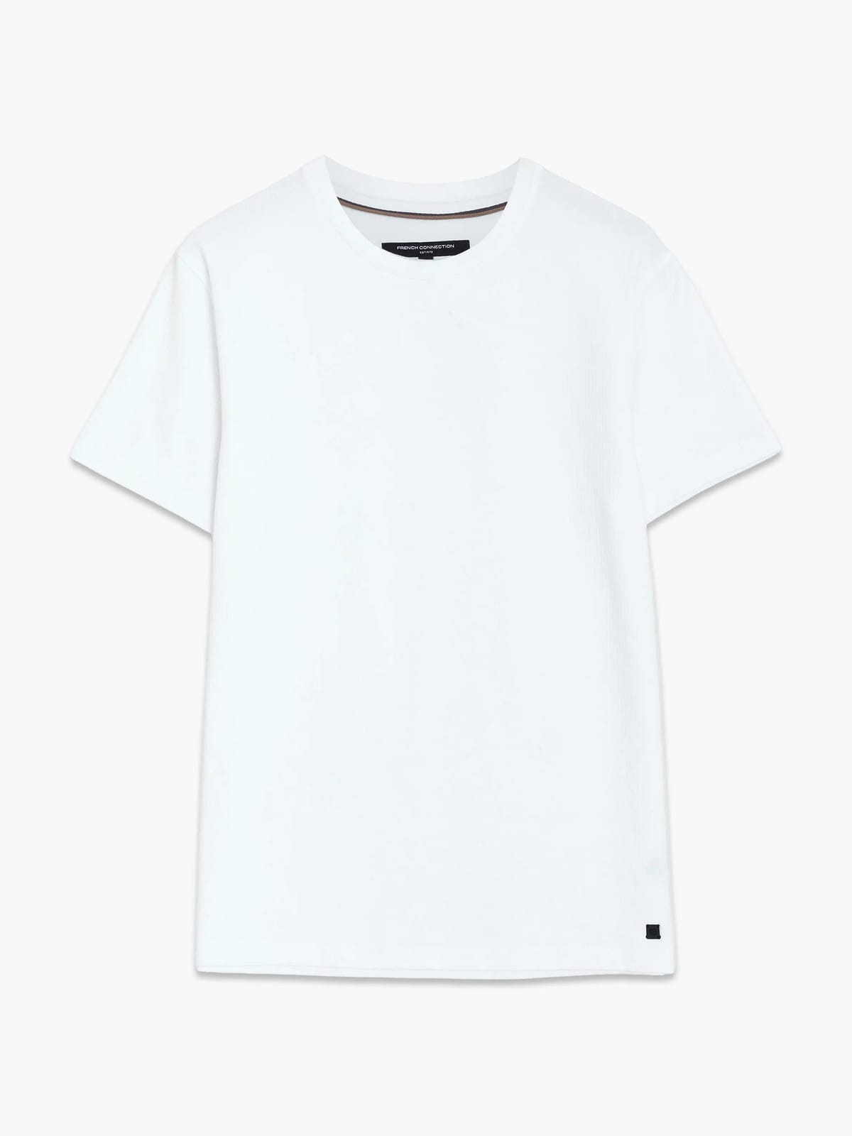 Upgrade your everyday wardrobe with the French Connection White Micro Seersucker Stripe T-Shirt. Featuring a casual crew neckline, breathable short sleeves, and a modern micro seersucker stripe texture. Perfect for a relaxed yet stylish look.