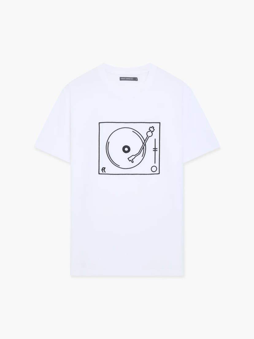 This French Connection t-shirt features a turntable graphic on a soft cotton fabric. The crew neck and short sleeves make it perfect for casual wear. Ideal for everyday rotation.