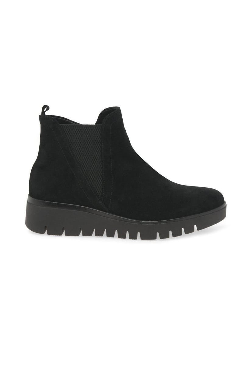 The Gabor Women's 'Dublin' Chelsea Boots in True Black is made from suede, rubber.
