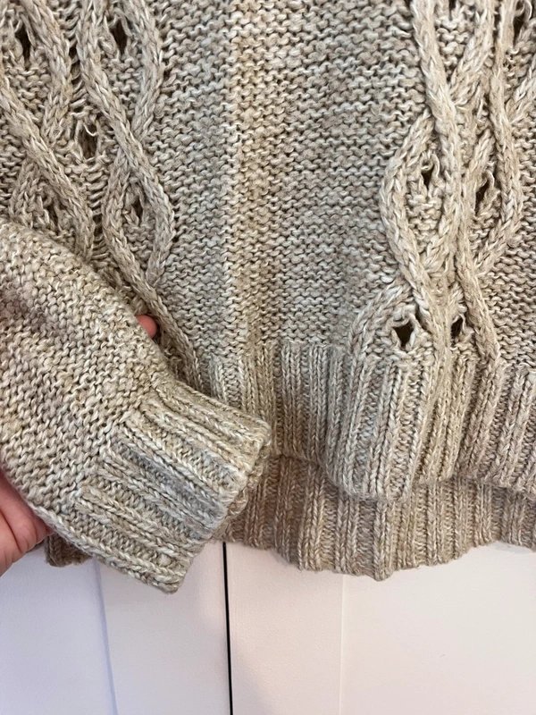 The George Cosy Crochet Pattern Knitted Jumper in Beige is available in sizes S.