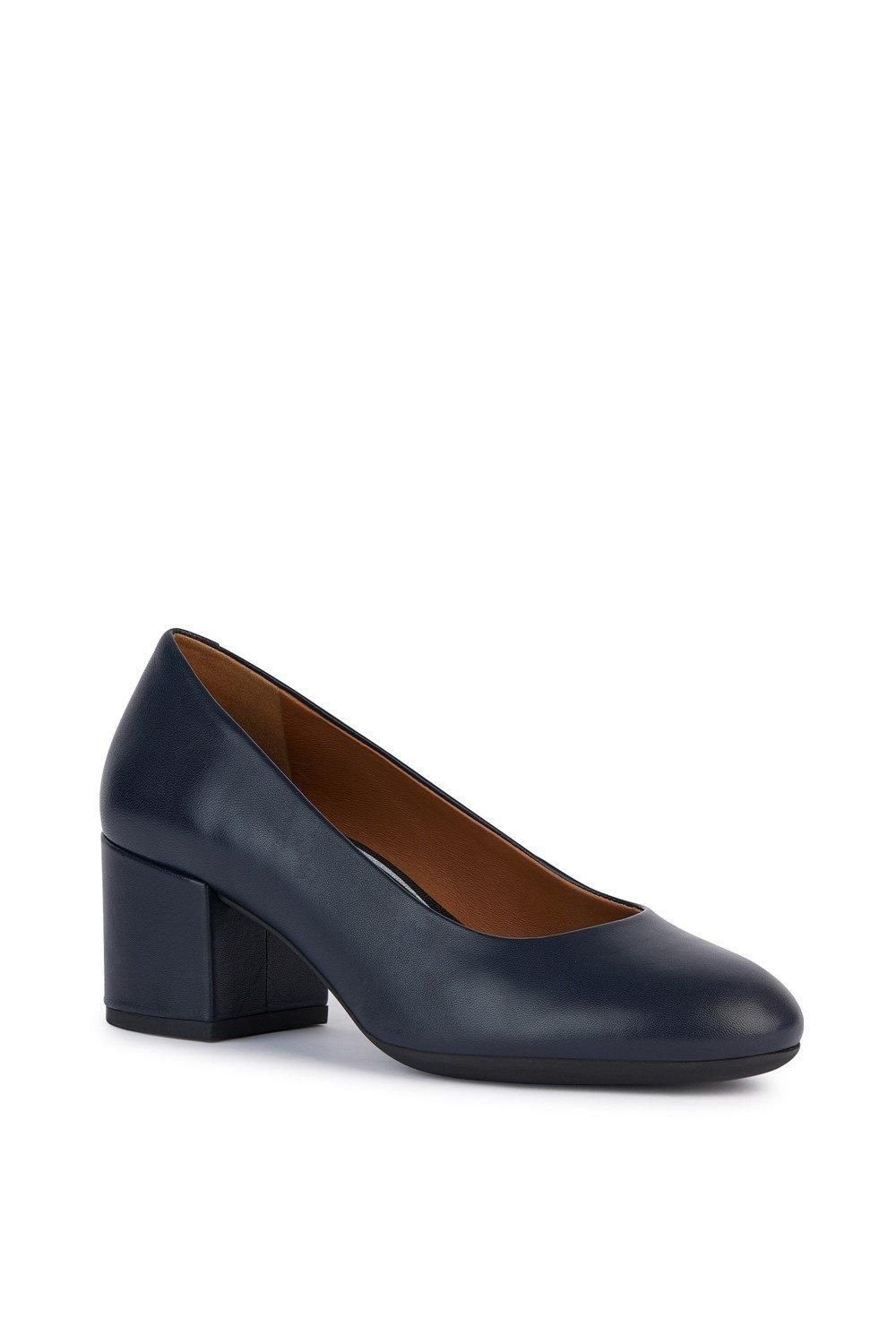 Stylish navy court shoe with a chunky 5-cm heel. Crafted from soft nappa leather, it offers a polished finish and breathable lining. Perfect for formal everyday wear.