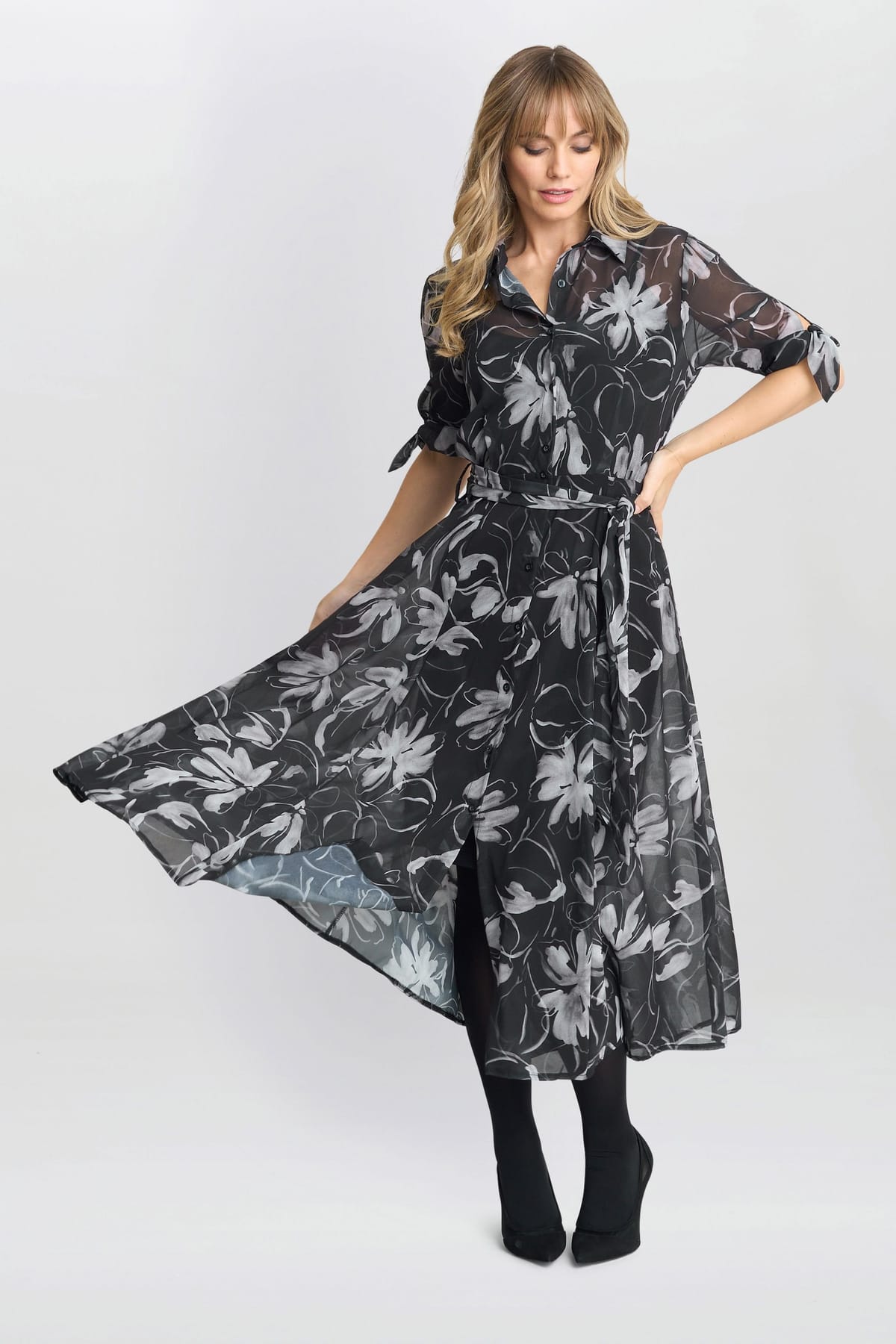 The Gina Bacconi Black Floral Shirt Dress is ideal for work, casual, evening.