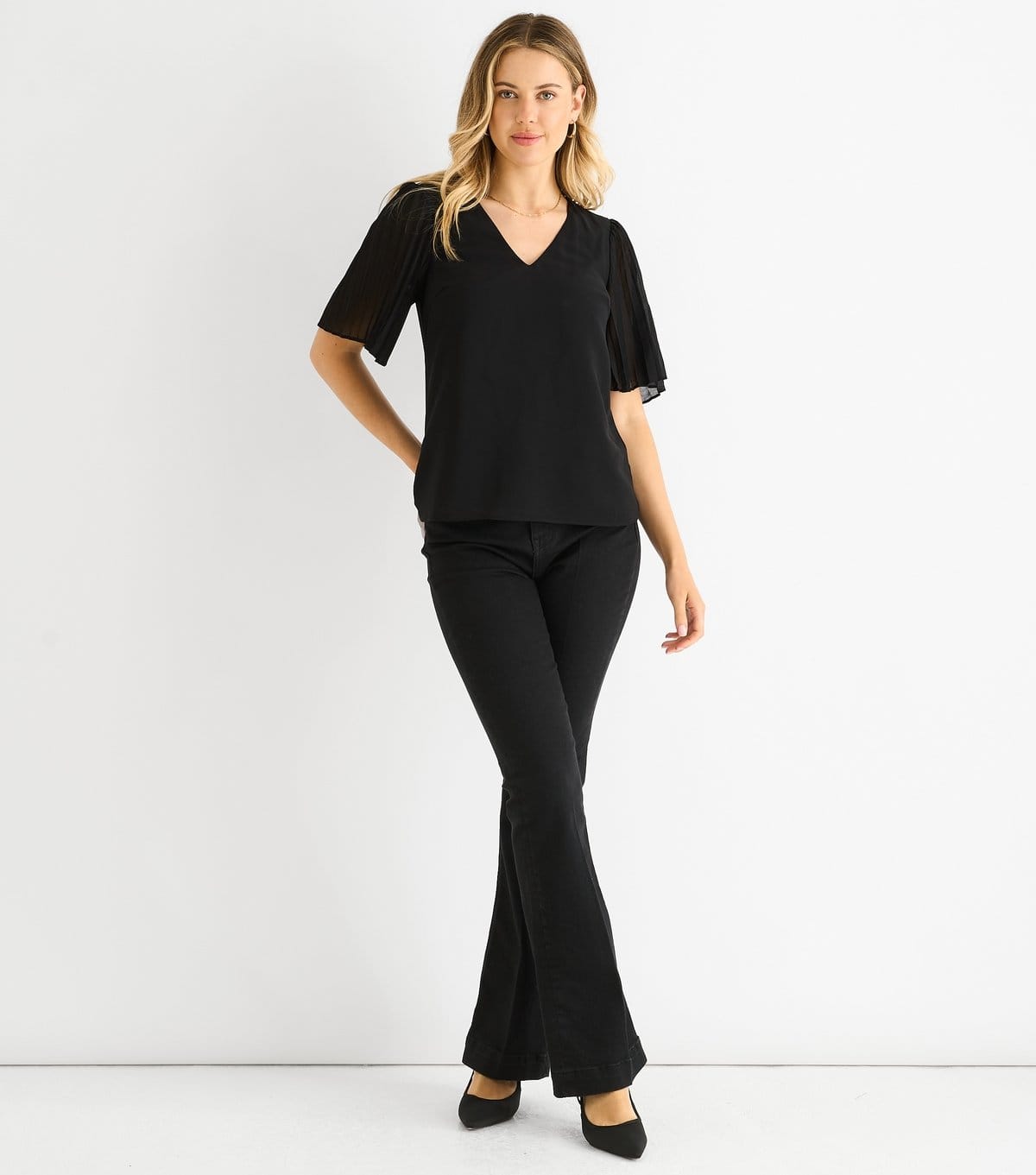 View New Look UK's returns policyStylish black chiffon top from Gini London featuring a V-neckline and short pleated sleeves. The relaxed fit and lightweight fabric make it perfect for casual or semi-formal occasions.