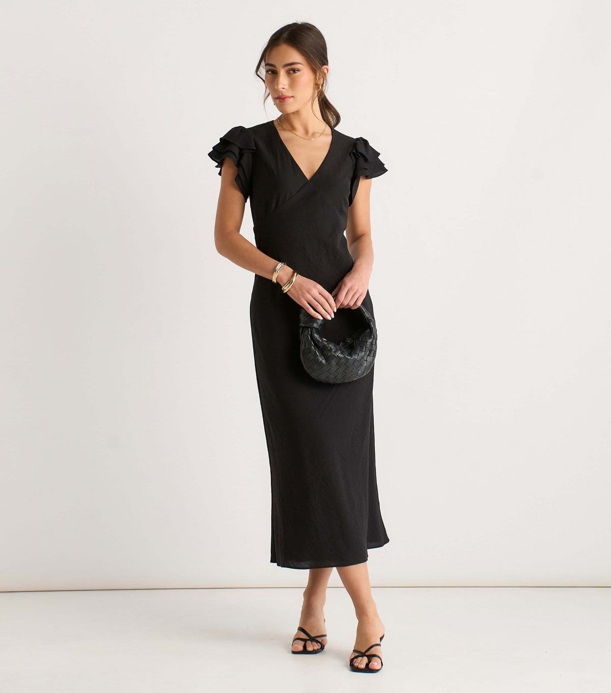 See all outfit ideasElegant and stylish, this black midi dress from Gini London features ruffled sleeves and a slim fit. Perfect for dressed-up events, it falls to a flattering midi length with an empire line silhouette.
