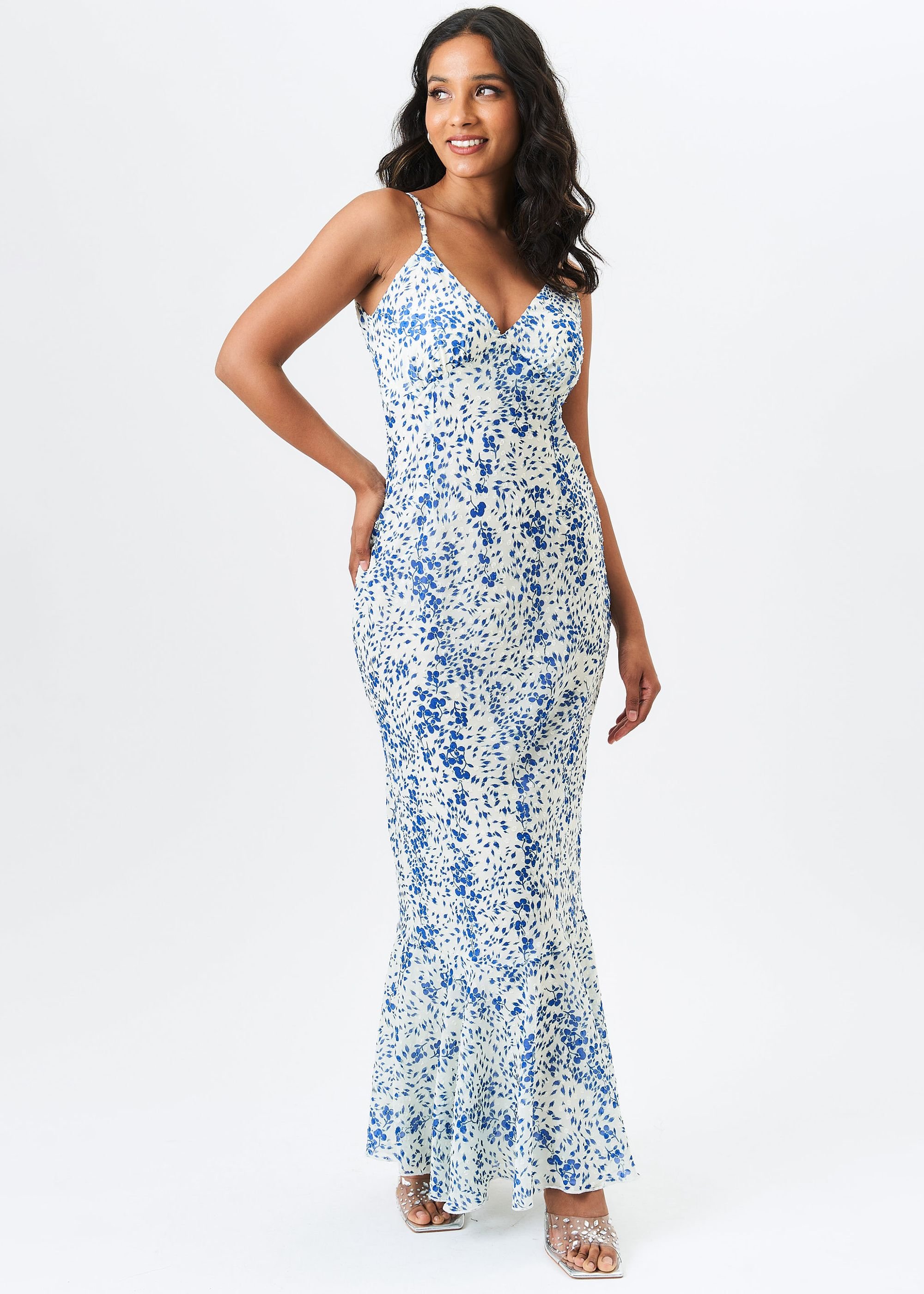 The Gini London Ivory Floral Chiffon Strappy Maxi Dress is ideal for evening, date-night, party.