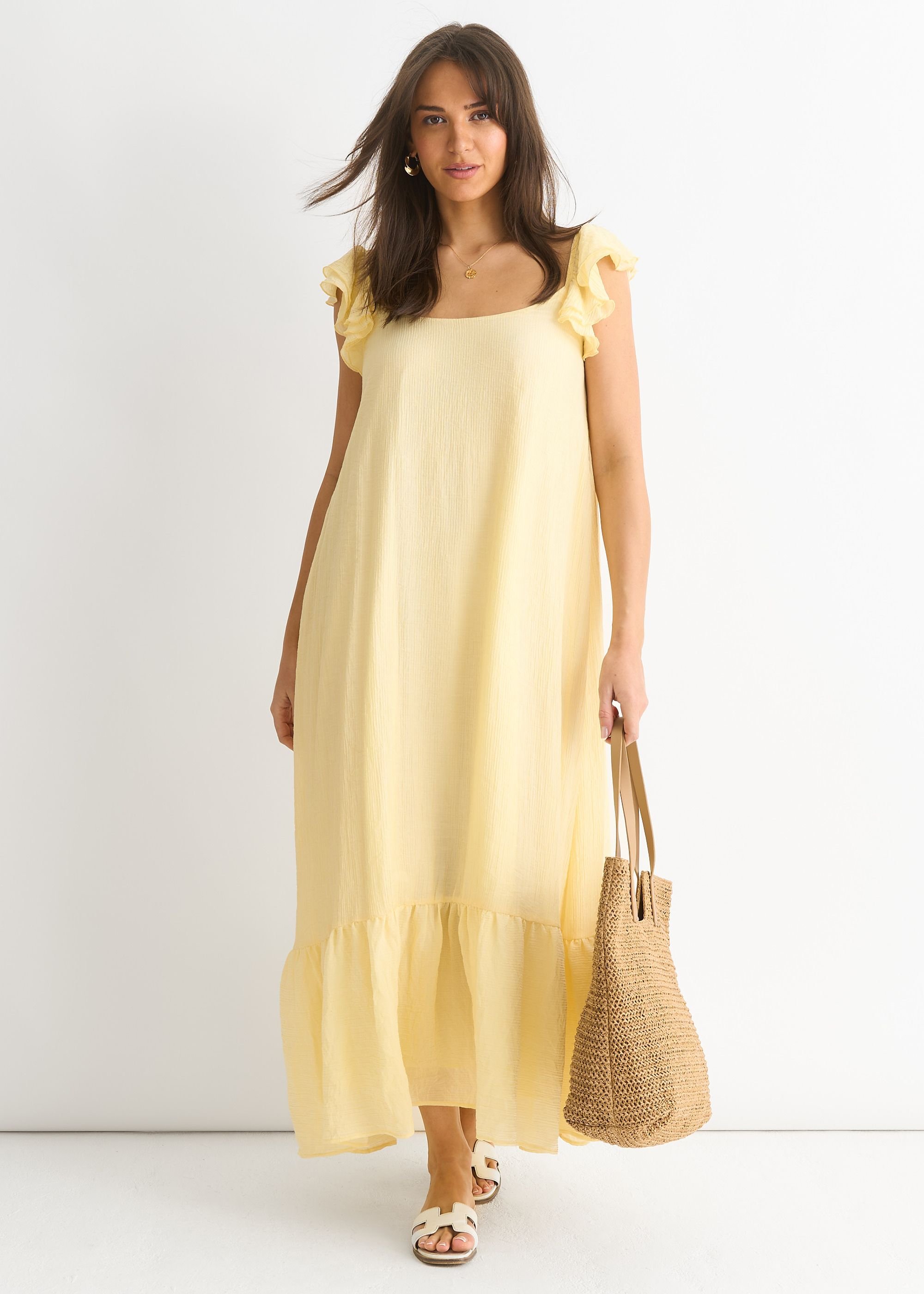 The Gini London Lemon Ruffle Viscose Maxi Dress is ideal for casual, summer day, night out.