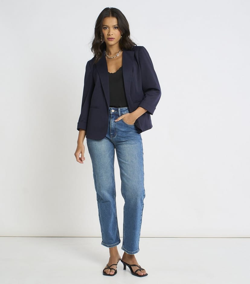 The Gini London Navy Open Front Blazer is ideal for casual, work, evening.
