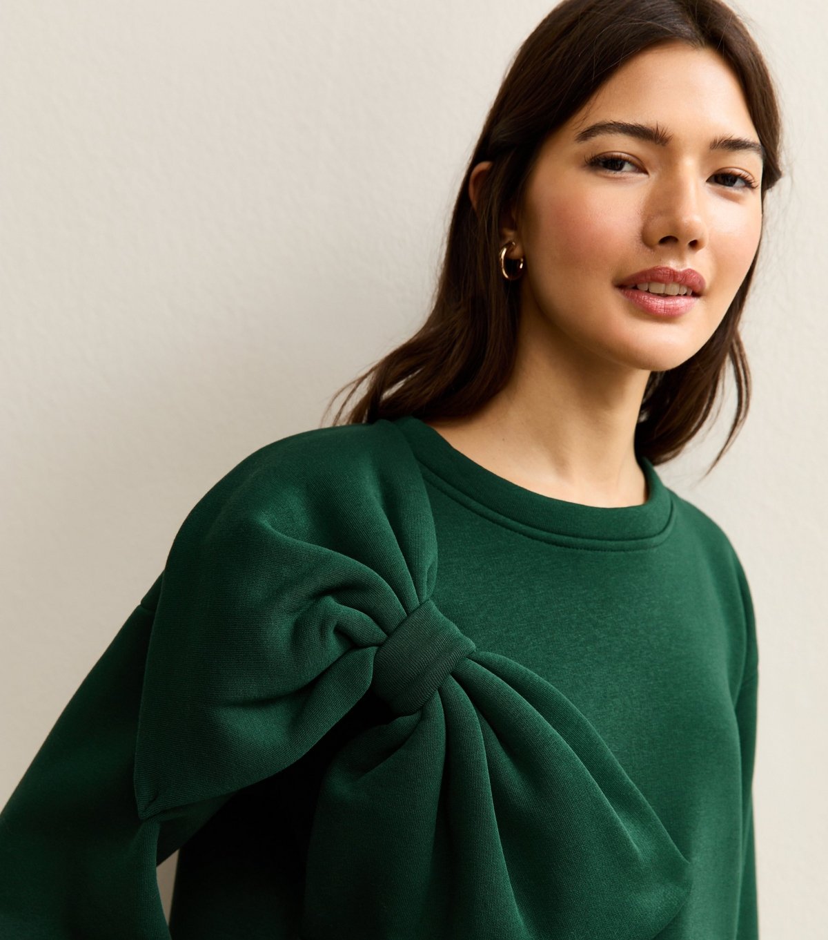 This oversized green jumper by Gini London is crafted from soft jersey fabric for ultimate comfort. Featuring a crew neckline and a distinctive bow applique, it offers a relaxed fit perfect for casual wear.