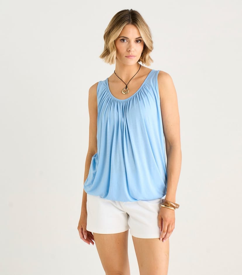 Effortlessly cool light blue sleeveless top from Gini London. Featuring a relaxed fit and gentle pleats, it's perfect for sunny day outings or casual gatherings.