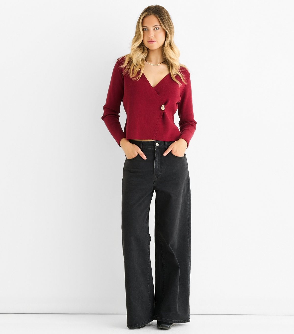 The Gini London Bright Red Wrap Cardigan is ideal for casual, everyday.